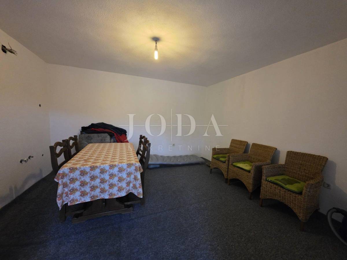 Prodajemo kuću na okućnici od 1200 m2. Kuća se sastoji od prizemlja i kata. U prizemlju se nalazi kuhinja, hodnik i kupaonica, a vanjsko stubište vodi do sobe. U sklopu kuće je i manje spremište. Sa terase se pruža pogled na more! Simpatična vikendica na lijepoj i mirnoj lokaciji na kraju ulice.