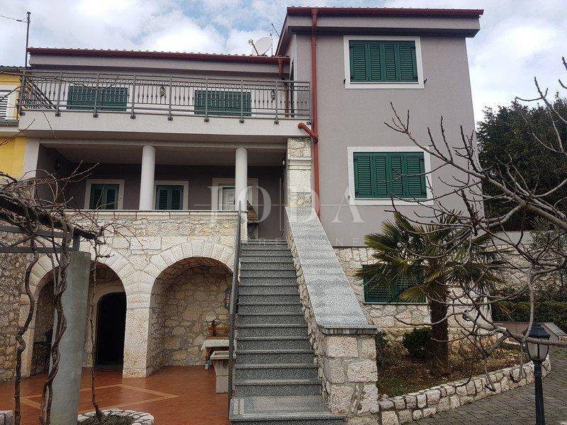Prodajemo kuću sa dvorištem na kraju mirne ulice. Sastoji se od prizemlja i dva kata. U prizemlju se nalazi kuhinja i blagovaona, te spremište sa zasebnim ulazom. Vanjskim stubištem se dolazi na terasu sa koje je ulaz u ostatak kuće. Na prvom katu su dvije prostrane spavaće sobe i kupaonica, dok su na drugom katu tri spavaće sobe i kupaonica. Svaka soba ima vlastiti izlaz na balkon. Sa balkona se pruža pogled na more. Kuća je kvalitetno obnovljena. Nekrtnina idealna za život, a i za bavljenje turizmom.