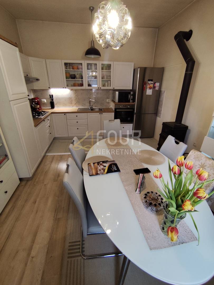 Prizemlje se sastoji od ulaznog hodnika, velike kuhinje s blagovaonicom, prostranog dnevnog boravka, hodnika sa spremištima ispod stepenica, spavaće sobe i kupaonice. Lijepim, komotnim drvenim stepeništem dolazi se na kat gdje se nalaze hodnik i dvije velike spavaće sobe.