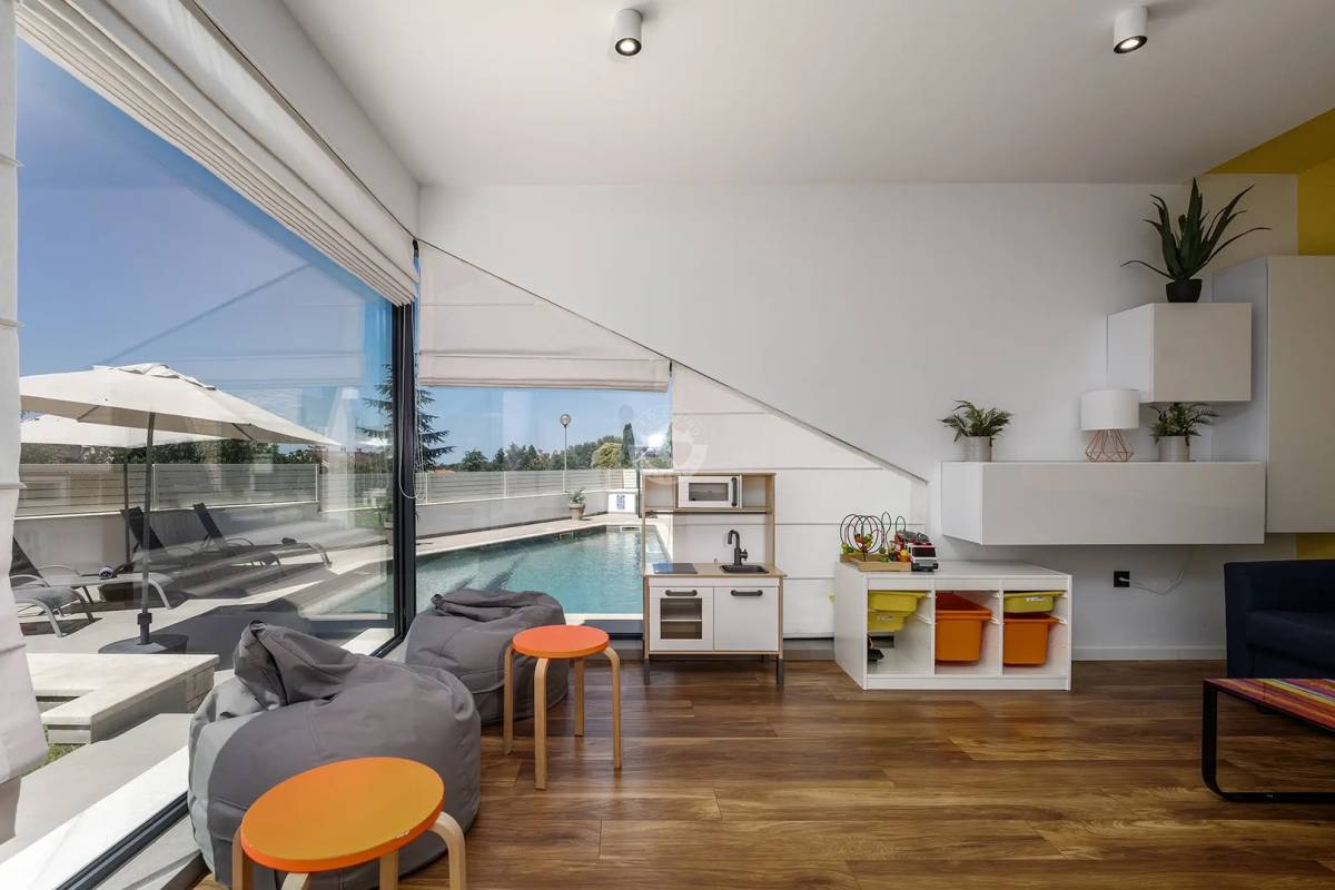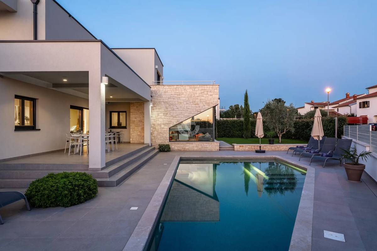 Ova Vila je ekskluzivna, moderno dizajnirana luksuzna vila s pogledom na more, smještena u jednoj od najtraženijih turističkih i stambenih regija Hrvatske – na poluotoku Istri, u blizini grada Poreča.