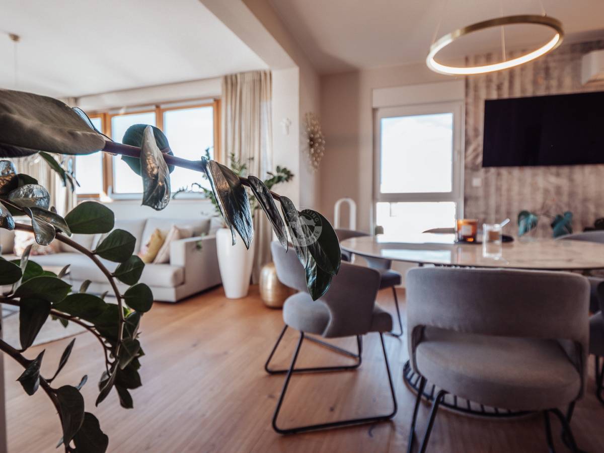 Stan se ističe promišljenim rasporedom prostorija, dvjema prostranim terasama orijentiranim na jugozapad i jugoistok, te svijetlim, otvorenim dnevnim prostorom s kuhinjom i blagovaonicom.