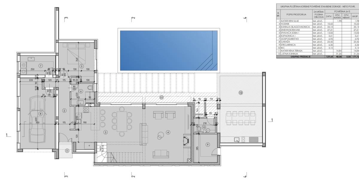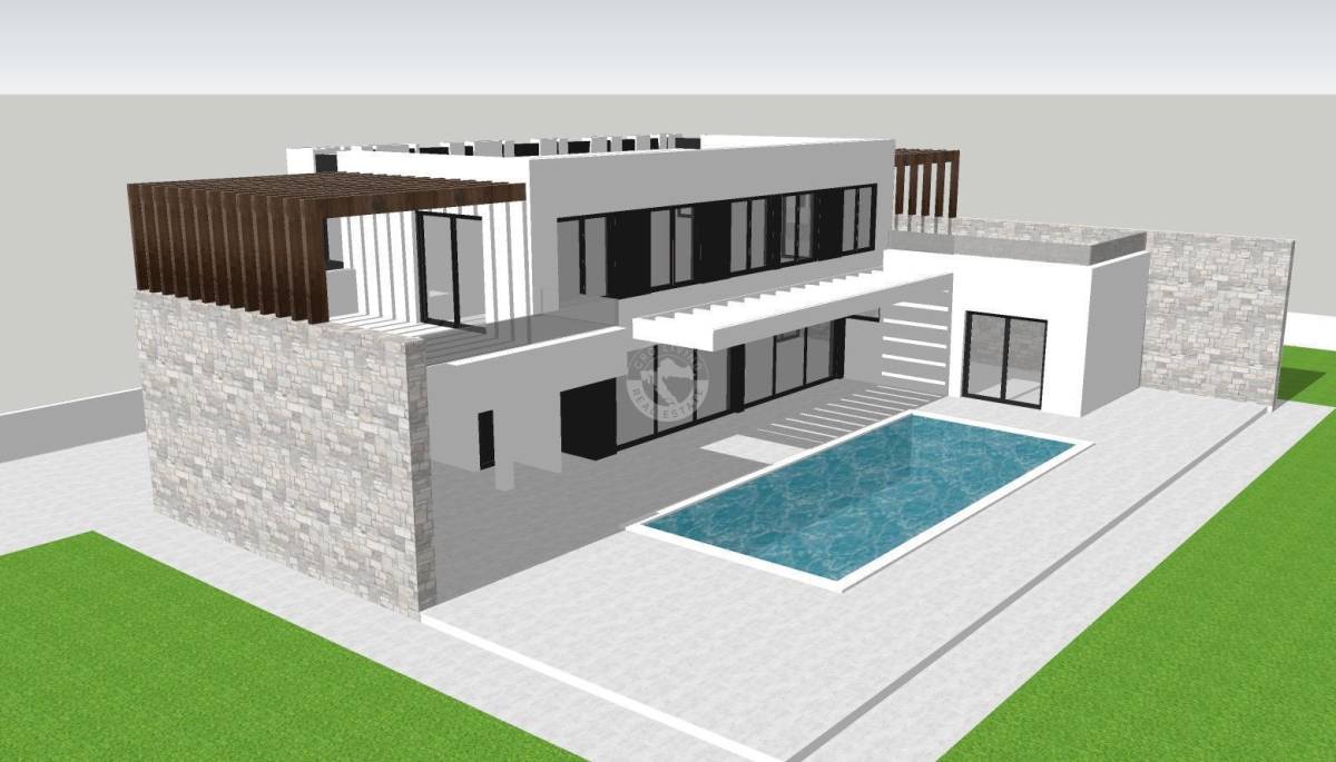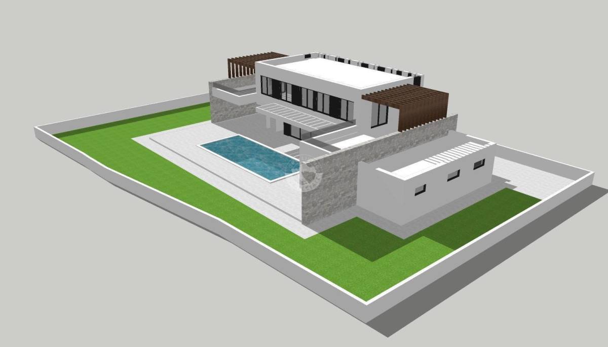 Odobreni projekt predviđa izgradnju moderne obiteljske vile s bazenom i pomoćnim objektom.