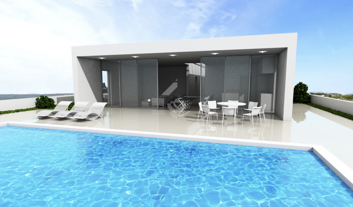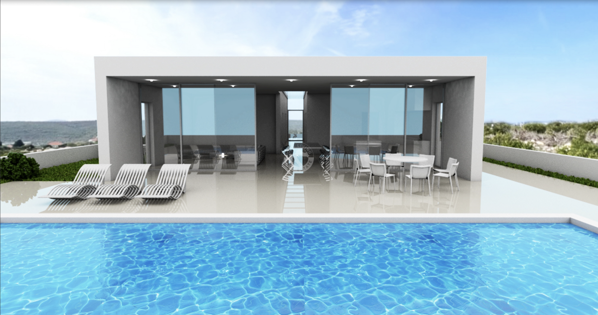 Planirani građevinski projekt odlikuje se promišljenim rasporedom prostorija i suvremenom arhitekturom. Predviđena je stambena površina od 130,70 m2, uz loggiu površine 16,70 m2, koja skladno povezuje unutarnji i vanjski prostor. Poseban naglasak predstavlja planirani bazen površine cca 40 m2, koji nekretnini daje izražen rekreacijski i turistički karakter. Dodatno je u vanjskom dijelu predviđena vanjska kuhinja, idealna za druženja i uživanje u mediteranskoj klimi.