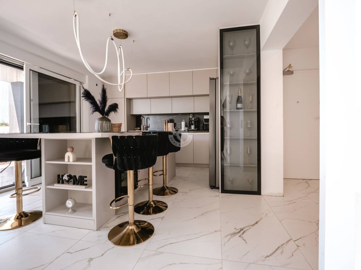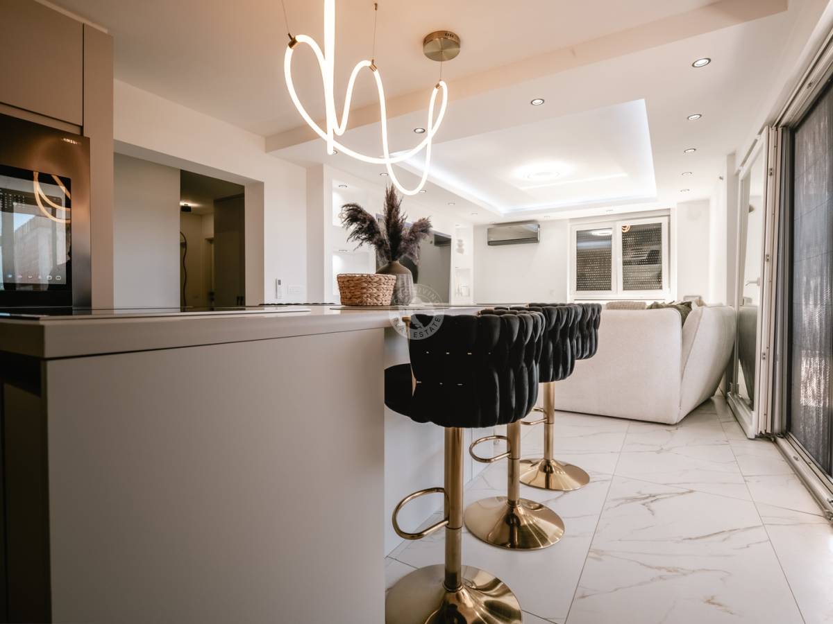 - Prostrani dnevni boravak s modernom kuhinjom i otokom s 3 sjedala