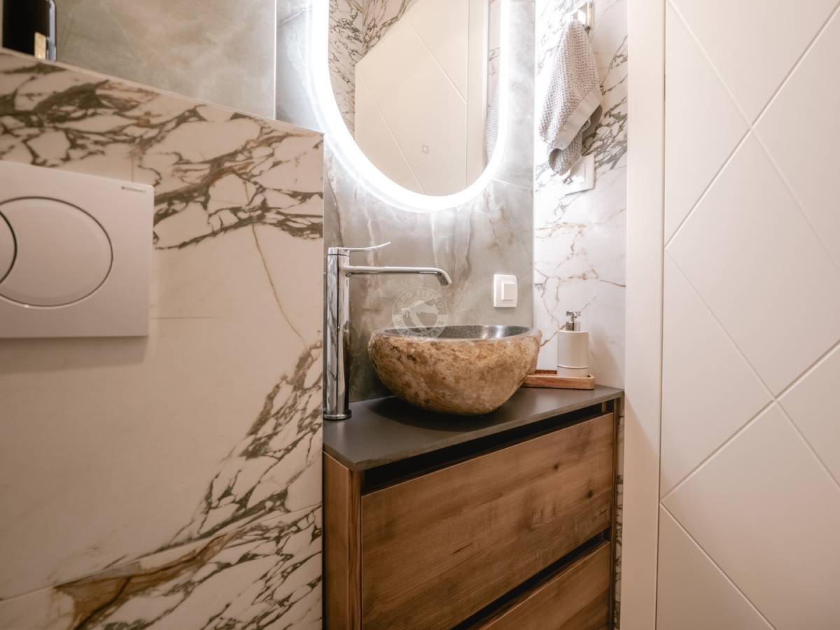 Nekretnina oduševljava svojim elegantnim dizajnom, pažljivo odabranim materijalima i promišljenim rasporedom prostorija.