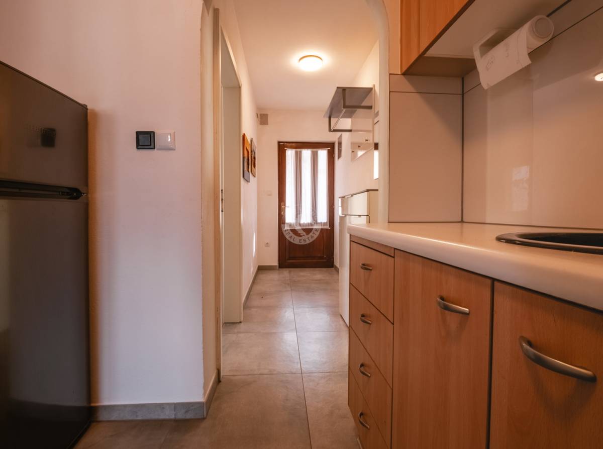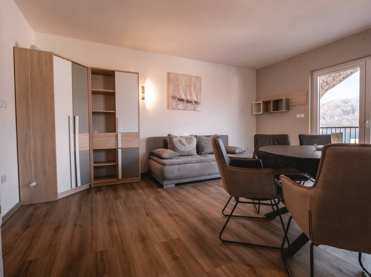 Središnji dio stana je veliki dnevni boravak s blagovaonicom koji stvara otvoren i ugodan ambijent. Uz to, stan raspolaže jednom spavaćom sobom, modernom kuhinjom te potpuno renoviranom kupaonicom s tušem. Natkriveni balkon dodatno proširuje stambeni prostor i pruža ugodno mjesto za boravak s pogledom na more i mjesto.