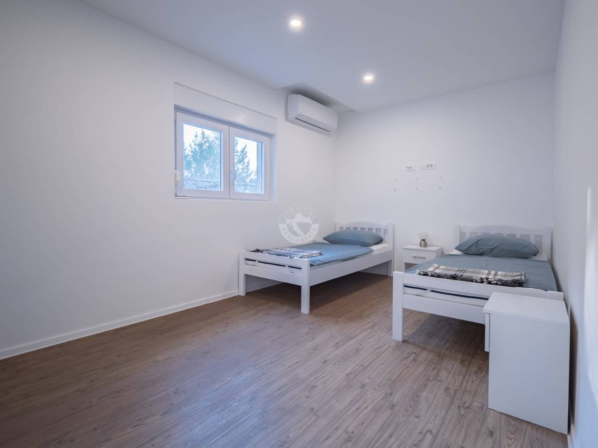 Na izuzetno prostranom zemljištu površine 2.522 m2, u katastarskoj općini Vir, nalazi se ova samostojeća kuća ukupne stambene površine od 211 m2, raspoređene na jednoj etaži. Riječ je o kući s ukupno četiri prostorije, od kojih su tri spavaće sobe, dok su na raspolaganju i tri kupaonice te dodatna tri WC-a, što osigurava visoku razinu komfora za obiteljski život ili turističko korištenje. Nekretnina raspolaže i s četiri parkirna mjesta, što je značajna prednost, posebno u turističkim zonama.
