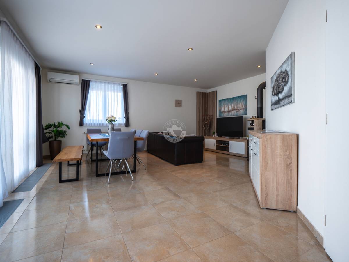 Ova moderna, potpuno opremljena obiteljska kuća uvjerava promišljenim rasporedom prostora, kvalitetnom kućnom tehnikom i privatnim vanjskim prostorom. Kuća se nalazi u mirnom stambenom naselju u Vrsi i idealna je kako za vlastito stanovanje, tako i za zahtjevan turistički najam.