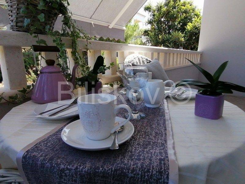 Kultivirana okućnica omogućava nesmetano uživanje za sve jedinice. Izuzetno dobra lokacija, jamči ovoj nekretnini jako dobru popunjenost, kako u sezoni, tako i izvan sezone. Nalazi se na nekoliko minuta šetnje od plaže, također i od samog centra.