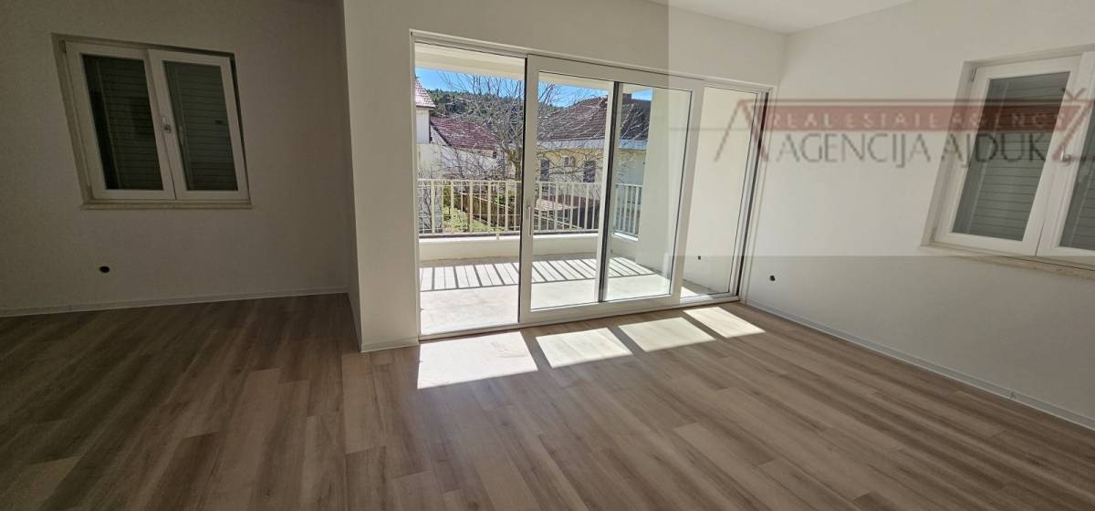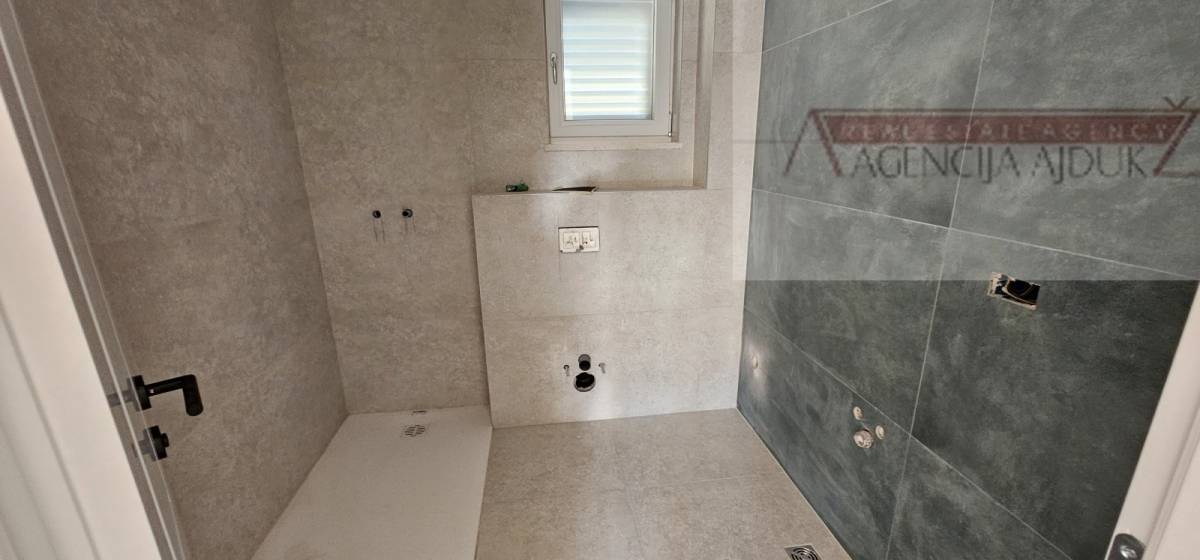 Svi podovi osim kupaonice i wc-a su vinyl podloga sa podnim grijanjem. Stan je također opremljen sa pripremom za klimu, pvc zatvori vrhunske kvalitete sa alu griljama. Iz dnevnog boravka sa izlazi na južnu terasu otvaranjem klizne stijenke vrhunske kvalitete. Ulazna vrata u stan su protuprovalna i protupožarna blindo.