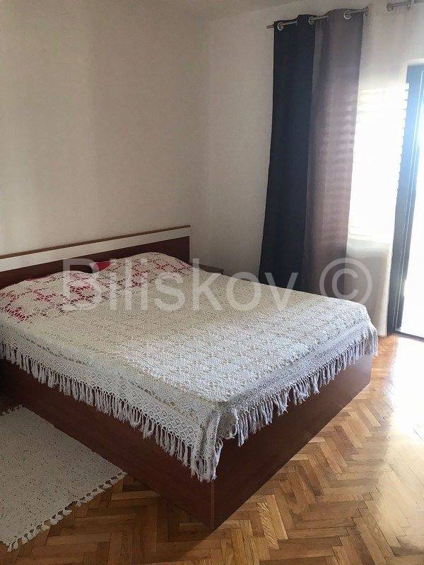 Stan se nalazi s jedne strane kuće prizemlje (sjever), a sa druge strane visina 1. kata (jug). Sastoji se od četiri spavaće sobe, dnevnog boravka s blagovaonicom, kuhinje, ostave, dvije kupaonice, jedan wc, hodnik i natkriveni balkon.