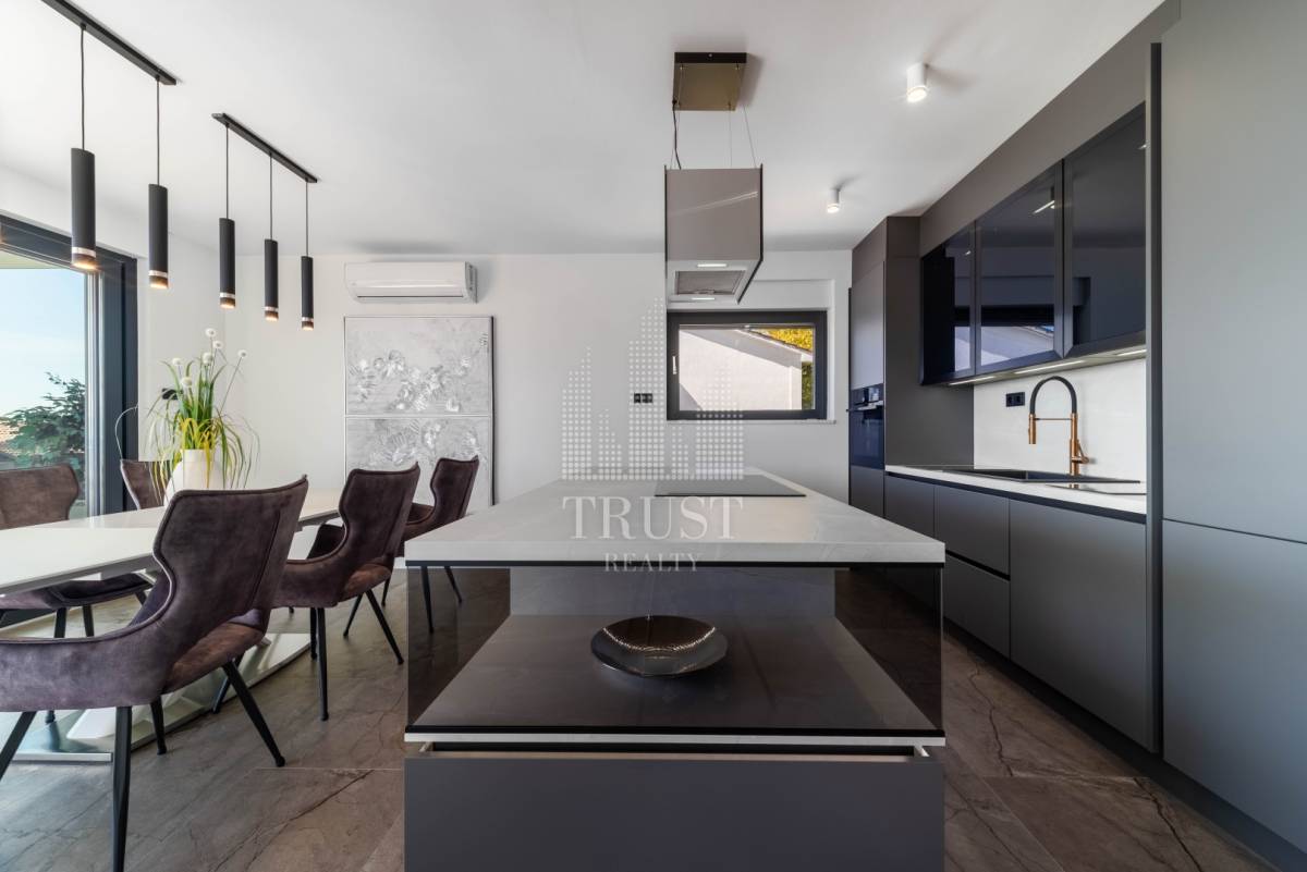 Na prodaju je luksuzan, potpuno nov stan smješten u modernoj novogradnji u mirnom i izuzetno atraktivnom dijelu Ičića, svega 200 metara od mora, plaže i ACI marine.