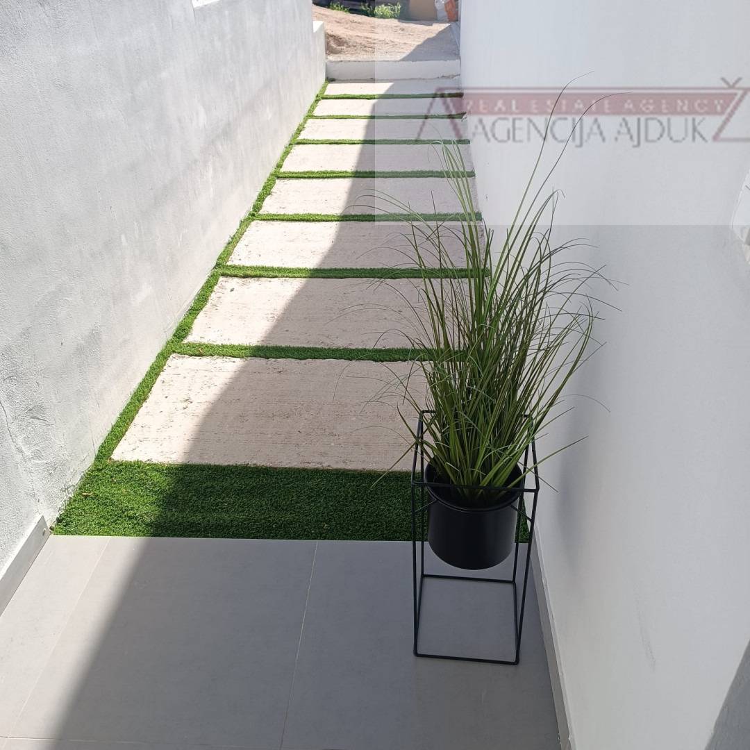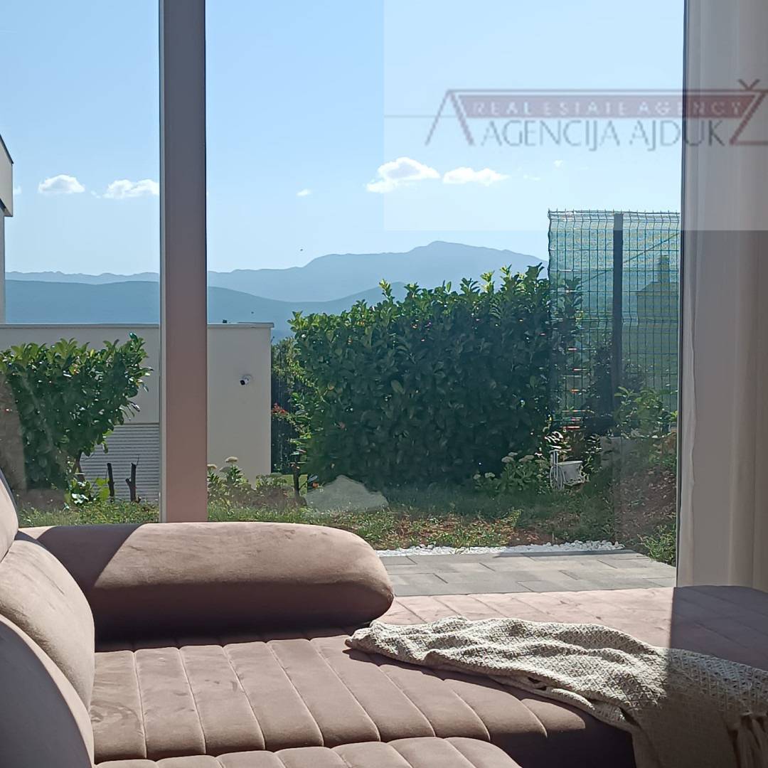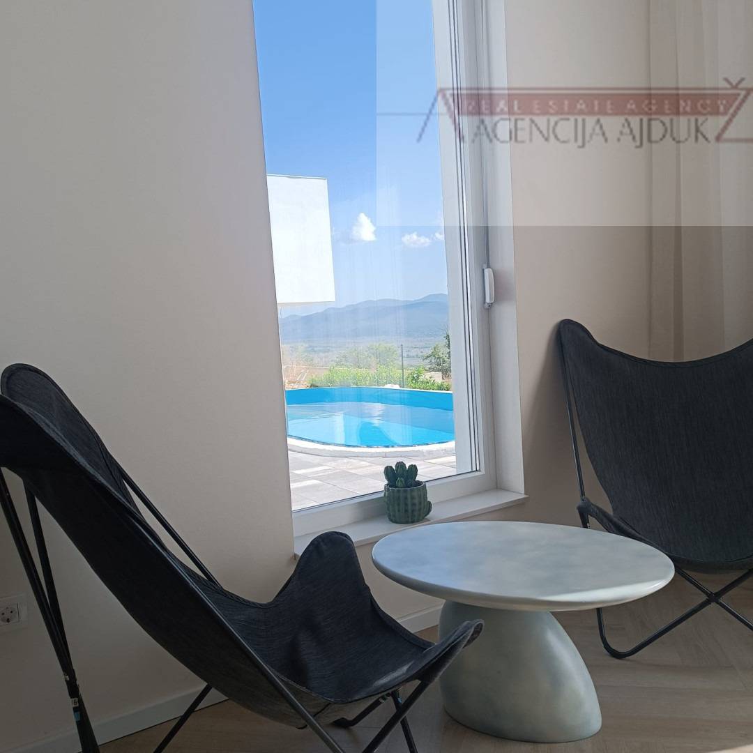 (Napomena moguća dogradnja kroz izmjenu i dopunu još 3 stambene jedinice, npr.2stana od 60m² na 1.katu i 1stan od 100m²+balkon u potkrovlju).Kuća je kompletno namještena i opremljena te se sastoji od 3 spavaće sobe, dvije od 12 m² i jedna od 20 m², dva kupatila i jedan vešeraj, namještene kuhinje i dnevnog boravka od 55m². Sve sobe su južne orijentacije kao i dnevni boravak te nude prekrasan pogled na planine. Najdojmljiviji dio je terasa sa sunčalištem uz bazen kao i odvojeno mjesto za roštilj i gredicom sa začinima. Riječ je o prekrasnoj kući koja nudi mir i privatnost te je stoga idealan izbor za obiteljsku oazu, dok joj sama lokacija nudi i mnoštvo izbora za iznajmljivanje.