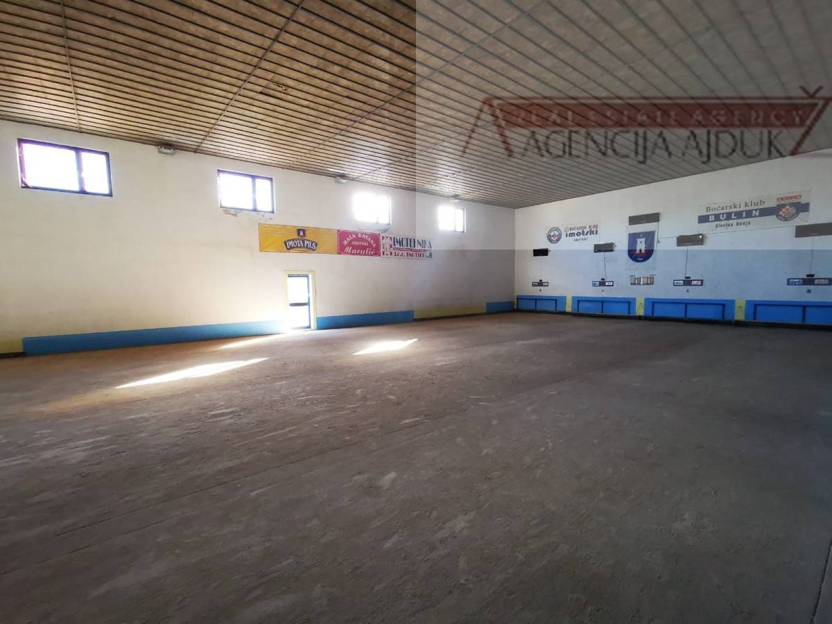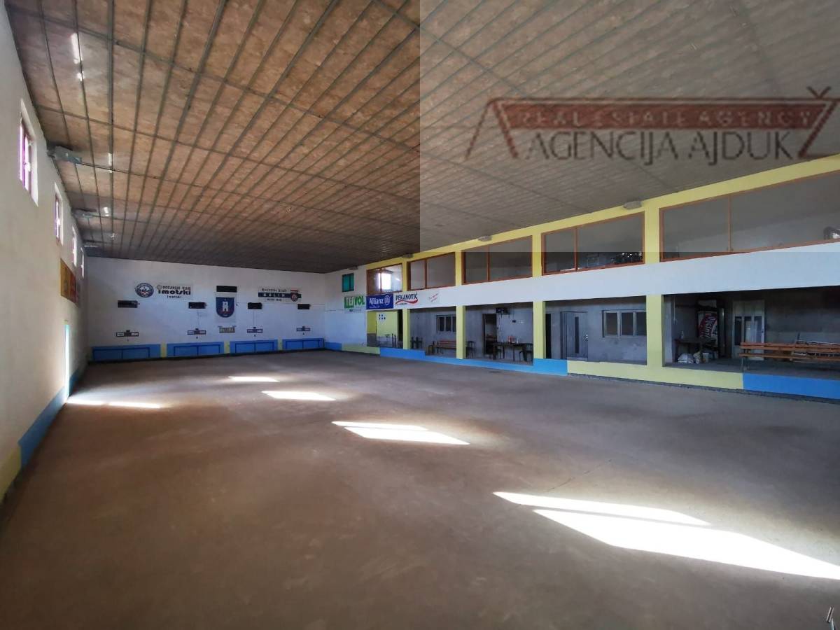 Prodaje se poslovni objekt u Imotskom - Glavina Donja u ukupnoj površini od 635 m2 na dvije etaže. Objekt se nalazi na parceli od 1950 m2 na kojoj ima dovoljno mjesta za parking više vozila i izgradnju novih po potrebi. Trenutno je u objektu veliko boćalište sa sanitarnim čvorovima, a na katu je caffe bar sa skladištem (zatvorena terasa).
