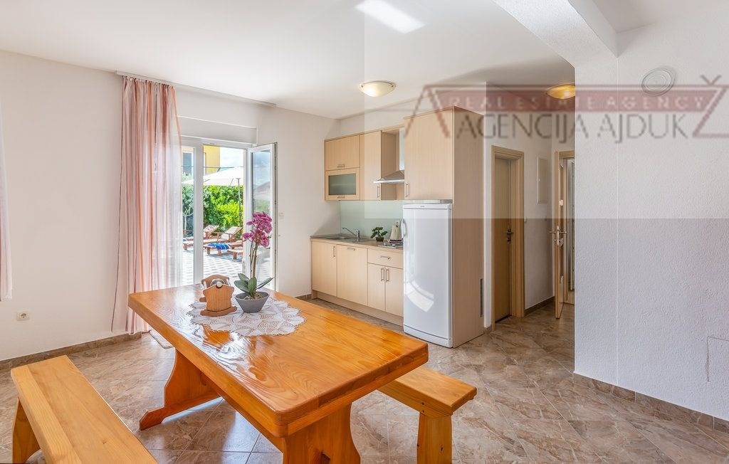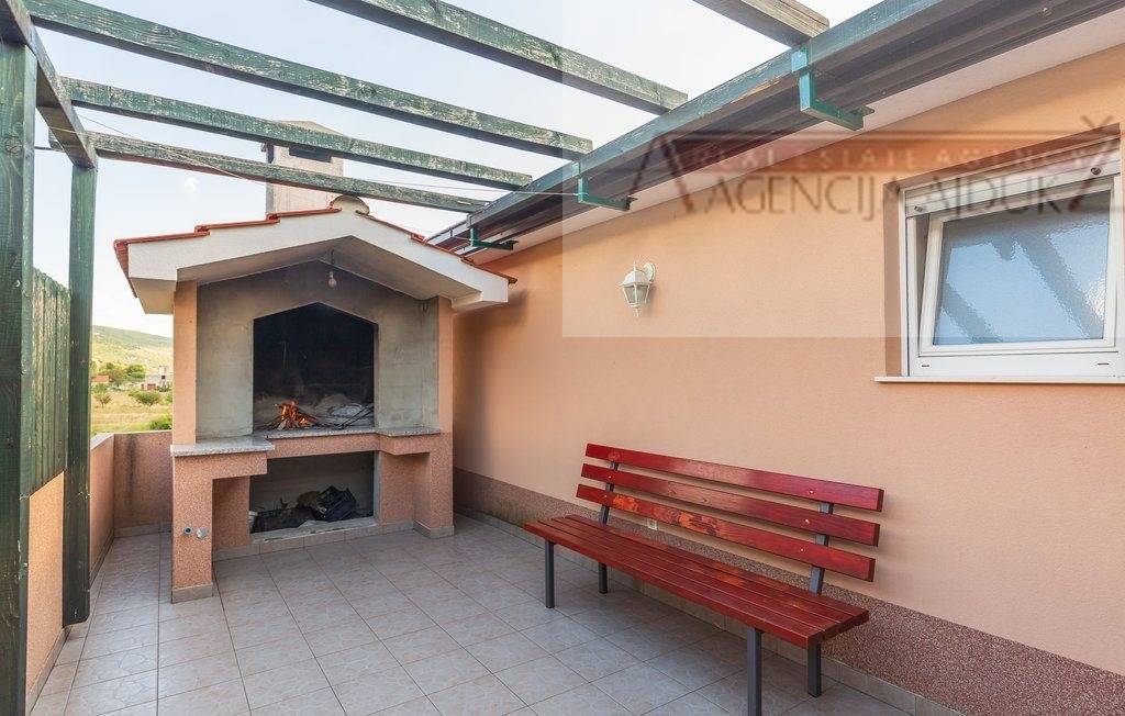 Vila se prodaje sa kompletnim namještajem. Oprema: klima uređaji, inox ograda, mramormo stubište, priprema za centralno grijanje, stiropol fasada, pvc otvori + roletne...