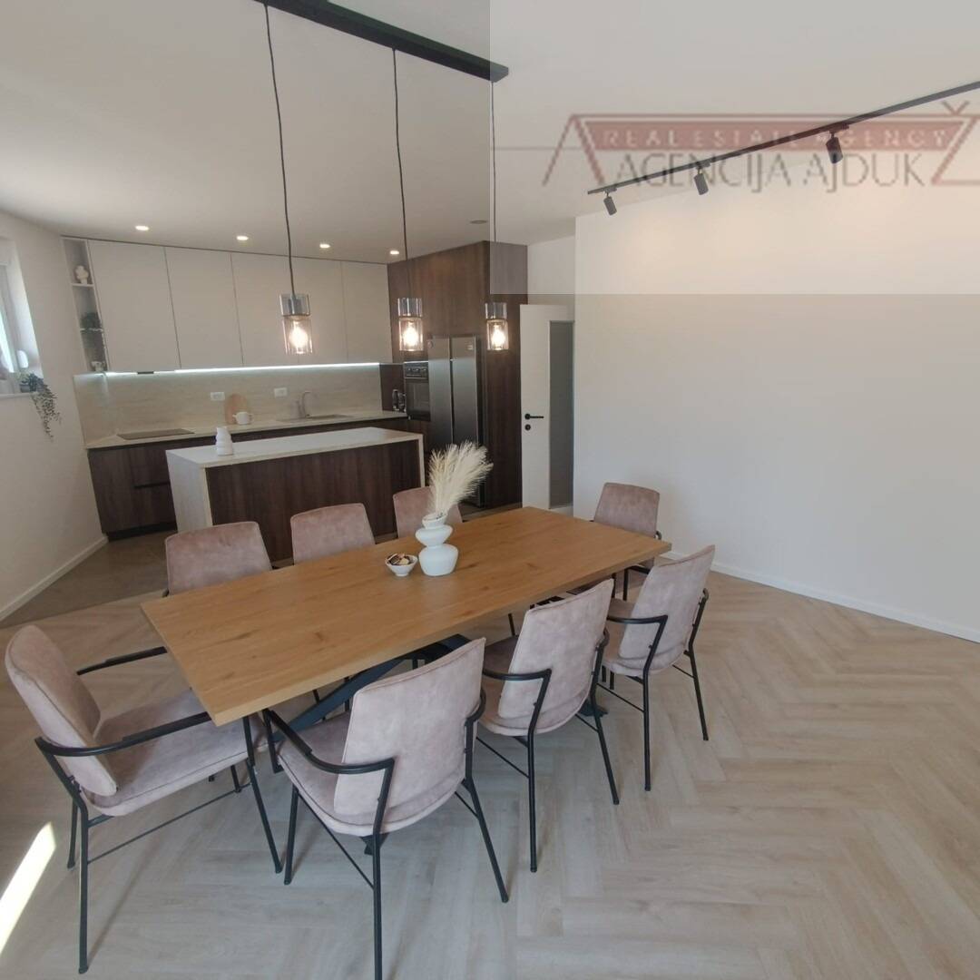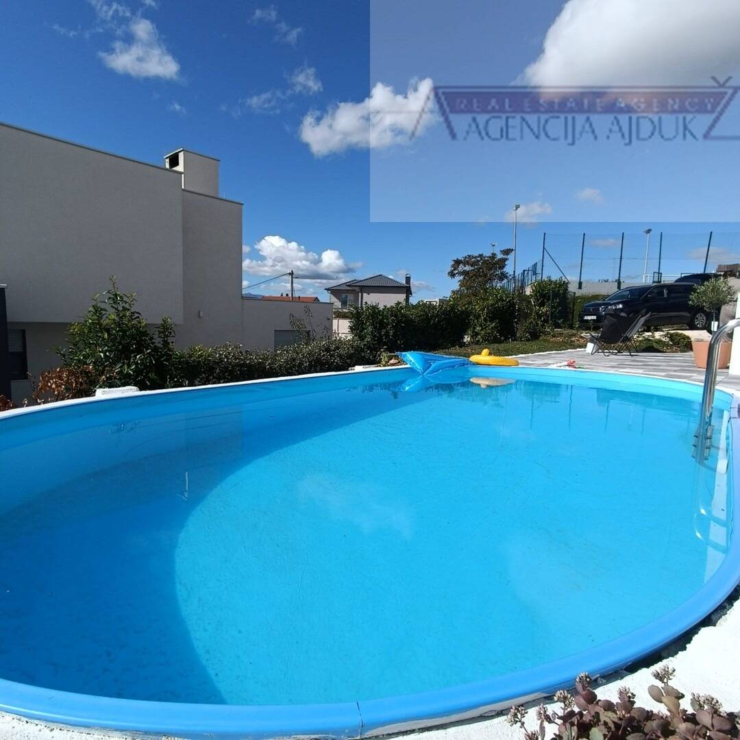 Stan je kompletno namješten i opremljen te se sastoji od 3 spavaće sobe, dvije od 12 m² i jedna od 20 m², dva kupatila i jedan vešeraj, namještene kuhinje i dnevnog boravka od 55m². Sve sobe su južne orijentacije kao i dnevni boravak te nude prekrasan pogled na planine. Najdojmljiviji dio je terasa od 80 m² sa sunčalištem uz bazen kao i odvojeno mjesto za roštilj i gredicom sa začinima. Riječ je o prekrasnom stanu koji nudi mir i privatnost te je stoga idealan izbor za obiteljsku oazu, dok sama lokacija nudi i mnoštvo izbora za iznajmljivanje.