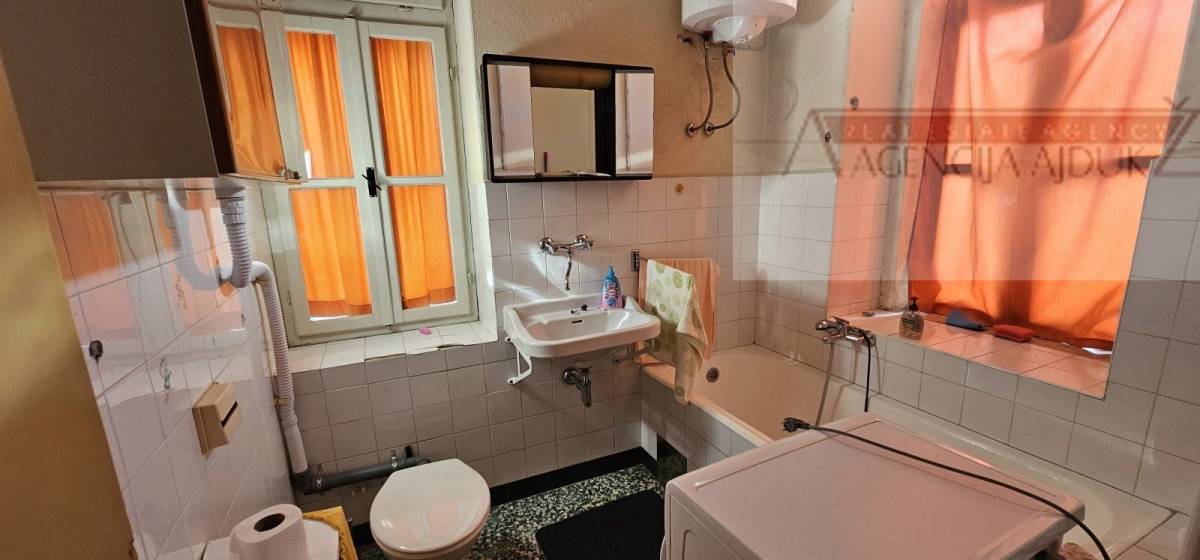 Prodaje se dvosobni stan na odličnoj lokaciji u blizini svih sadržaja u centru grada Imotskog. Stan se nalazi na drugom katu starije stambene zgrade u ukupnoj površini od 71,60 m2. Sastoji se od ulaznog prostora, kuhinje sa blagovaonicom, dnevnog boravka, dvije velike spavaće sobe, ostave te kupaonice. Stanu također pripada i drvarnica u podrumu zgrade.