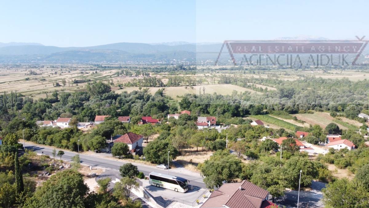 Parcela je položena prema jugu, blaga padina, idealna za izgradnju objekata tako da je pogled prema planinio Biokovo i Imotskom polju trajan.