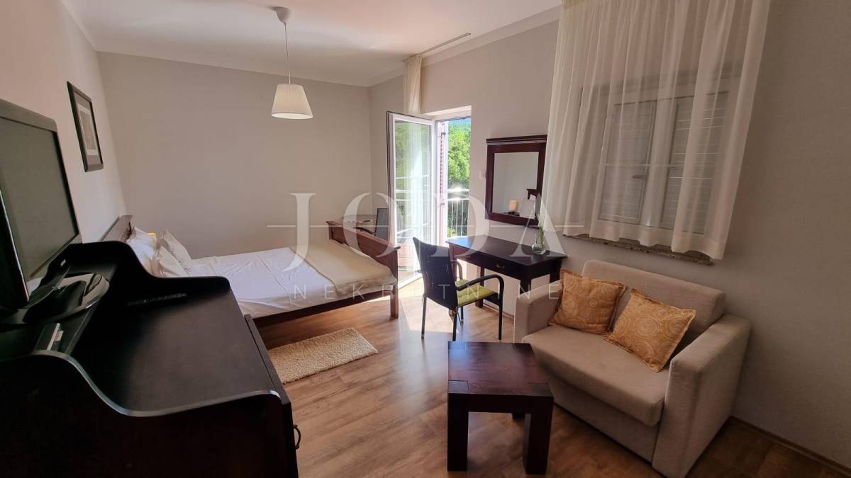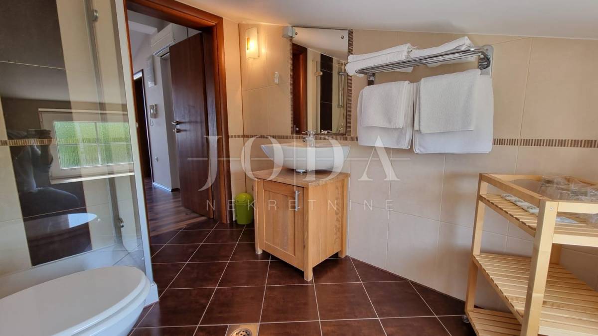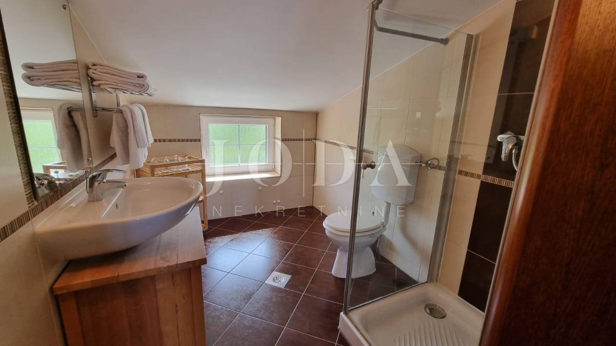 Nekretnina dodatno raspolaže prostranom konobom, koja može služiti kao zajednički prostor za goste ili biti prenamijenjena u dodatni sadržaj prema željama investitora. Na uređenoj okućnici nalazi se bazen s prostorom za sunčanje, čime se osigurava visoka razina komfora i privatnosti. Osiguran je i vlastiti parking, što predstavlja značajnu prednost u turističkom sektoru.