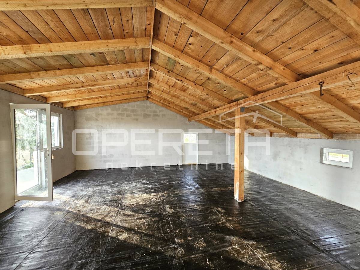 Prizemlje obuhvaća otvoreni prostor kuhinje, blagovaonice i dnevnog boravka, dvije spavaće sobe te kupaonicu s toaletom. Ispred kuće nalazi se natkrivena terasa s pogledom na vrt koji pruža brojne mogućnosti uređenja, uključujući i prostor za izgradnju bazena ili zone za opuštanje i druženje.