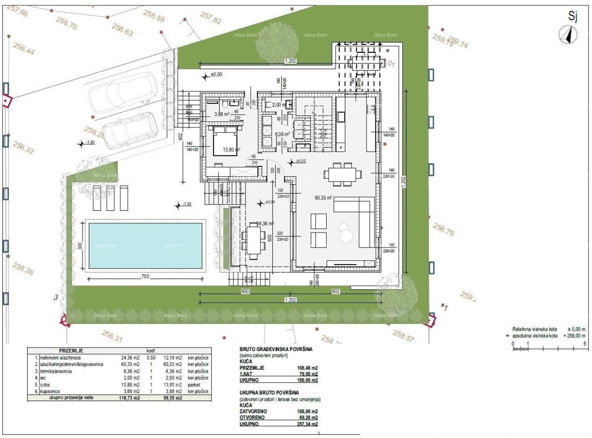 Zemljište se nalazi svega nekoliko minuta vožnje do Svetvinčentata i posjeduje građevinsku dozvolu za izgradnju kuće sa bazenom.