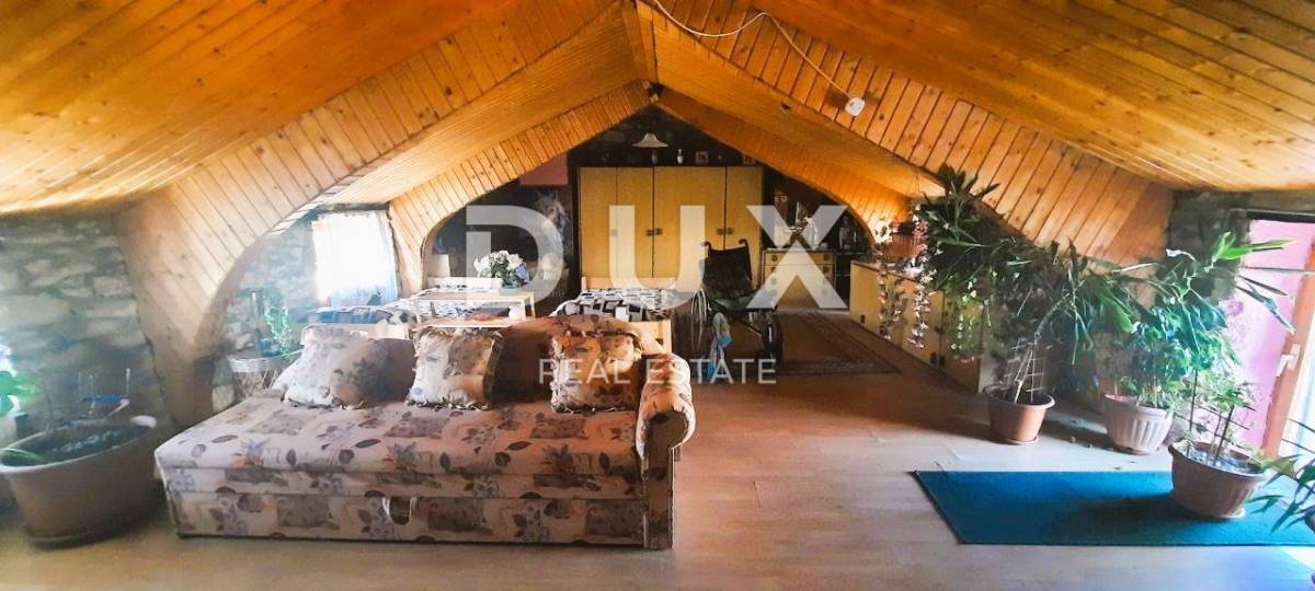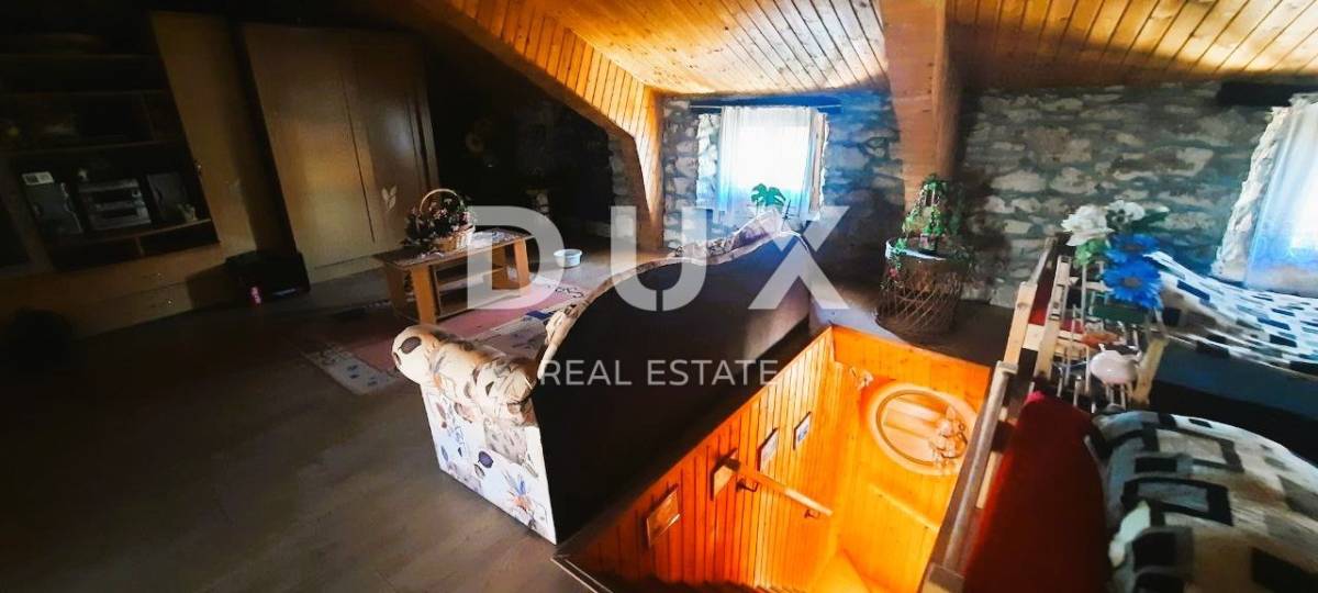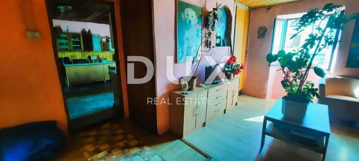 Prizemlje nudi stan od 40 m2, spreman za renovaciju i prilagodbu prema vašim željama. Stanovi na prvom i drugom katu zajedno obuhvaćaju čak 120 m2, nudeći prostrane sobe i bezbroj kreativnih mogućnosti. Kuhinja zauzima središnje mjesto u kući, a dnevni boravak je povezan s jednom od spavaćih soba. U blizini ulaznih vrata nalazi se kupaonica. Iz dnevnog boravka vodi stubište na gornji kat, gdje se prostire velika soba s predivnim pogledom na more.