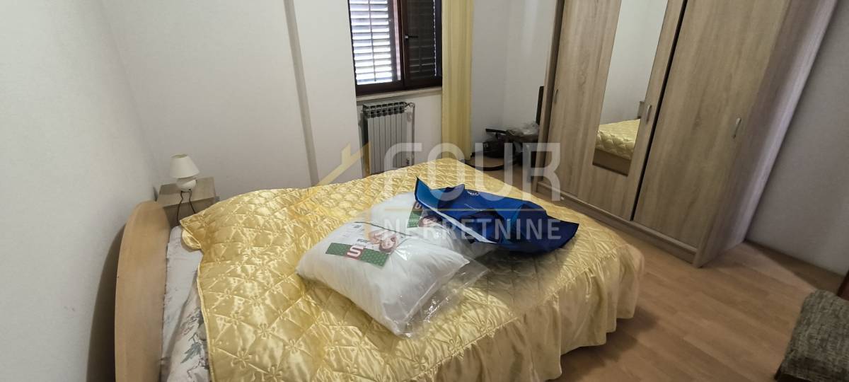 Sastoji se od prizemlja i prvog kata. Prizemlje se koristi kao garaža i konoba te raspolaže priključcima vode i struje, što pruža mogućnost različitih namjena prostora. Na kat se dolazi vanjskim stepenicama gdje se nalaze se tri spavaće sobe i otvoreni prostor koji objedinjuje dnevni boravak, kuhinju i blagovaonicu i kupaonica. Prostor je svijetao, prozračan i ugodan za boravak.