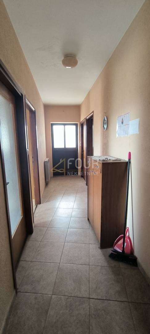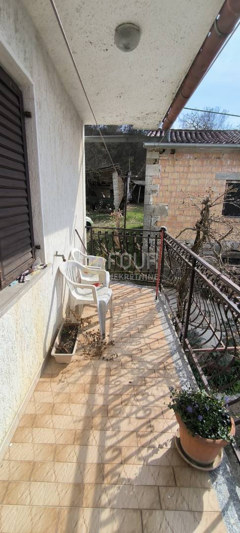 Iz dnevnog boravka i blagovaonice izlazi se na balkon koji se proteže cijelom dužinom kuće, s lijepim pogledom na zelenilo i okolna brdašca.