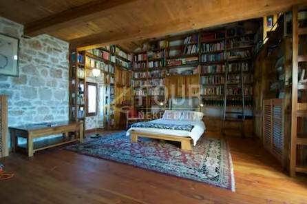 U prizemlju se nalaze dva studio apartmana, od kojih jedan ima kamin i galeriju, dok se u središnjem dijelu kuće nalazi glavna stambena jedinica s prostranim dnevnim boravkom, kuhinjom i blagovaonicom iz koje se izlazi na ograđeno dvorište s bazenom. Na katu se nalazi velika spavaća soba, kupaonica i prostor knjižnice koji se može koristiti i kao dodatna spavaća soba, dok je u potkrovlju smještena još jedna spavaća soba, kupaonica i galerija povezane s knjižnicom.
