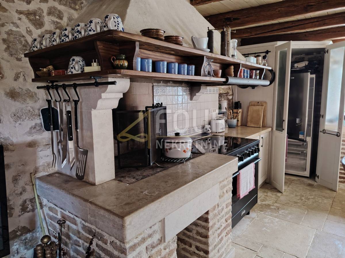 Kuća je u potpunosti adaptirana, pri čemu su obnovljeni krov i fasada, a zadržan je autentični šarm kamene gradnje. Opremljena je drvenom stolarijom te suvremenim sustavima grijanja i hlađenja koji uključuju podno i centralno grijanje, kamin, klima uređaje te dizalicu topline. Dodatnu energetsku učinkovitost osiguravaju solarni paneli. Nekretnina je priključena na vodu, struju i gradsku kanalizaciju, a ima i septičku jamu.