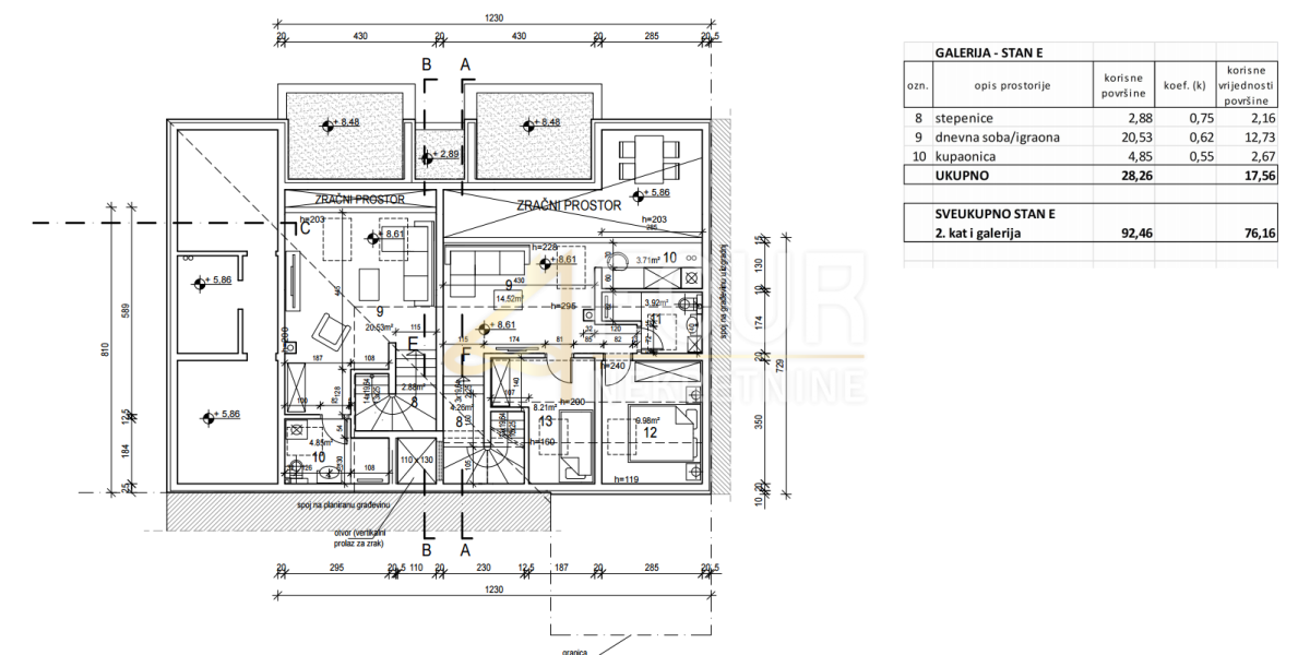 Galerija površine 17.56m2 uključuje dnevni dio/igraonicu i kupaonicu.