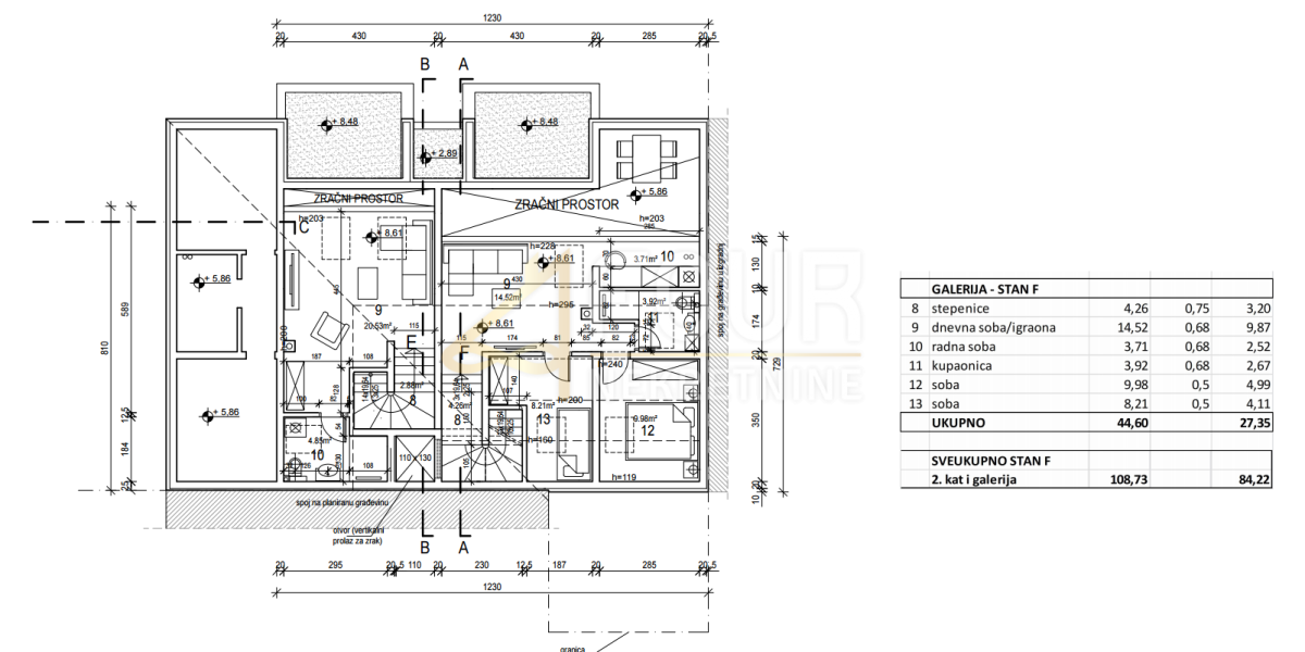 Galerija površine 27.35m2 uključuje dnevni dio/igraonicu i kupaonicu, radne sobe, dvije sobe.