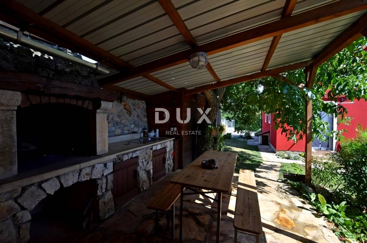 Uz kuću se na ograđenoj i uređenoj okućnici nalazi bazen sa sunčalištem i natkrivena ljetna kuhinja s otvorenim kaminom.