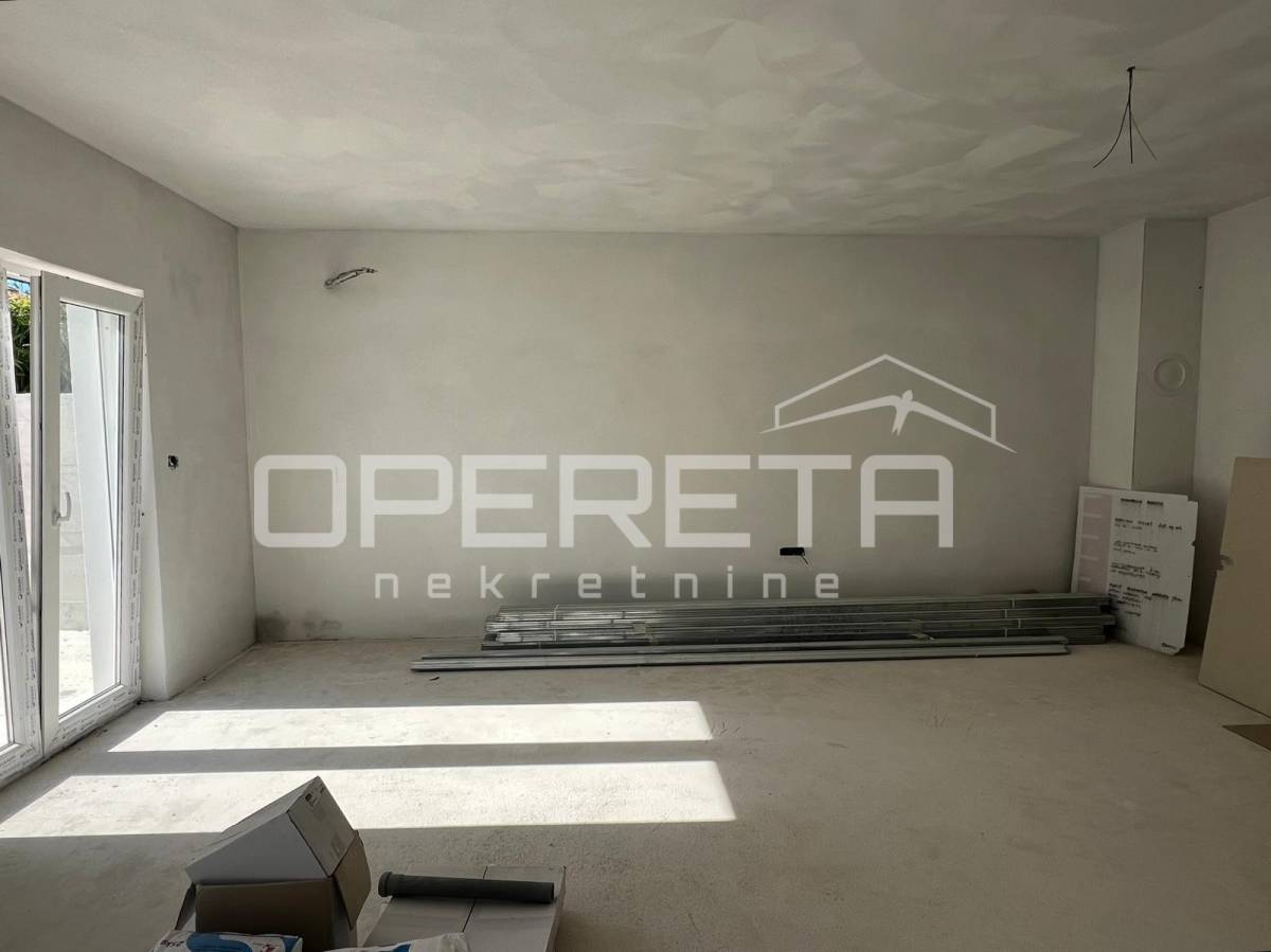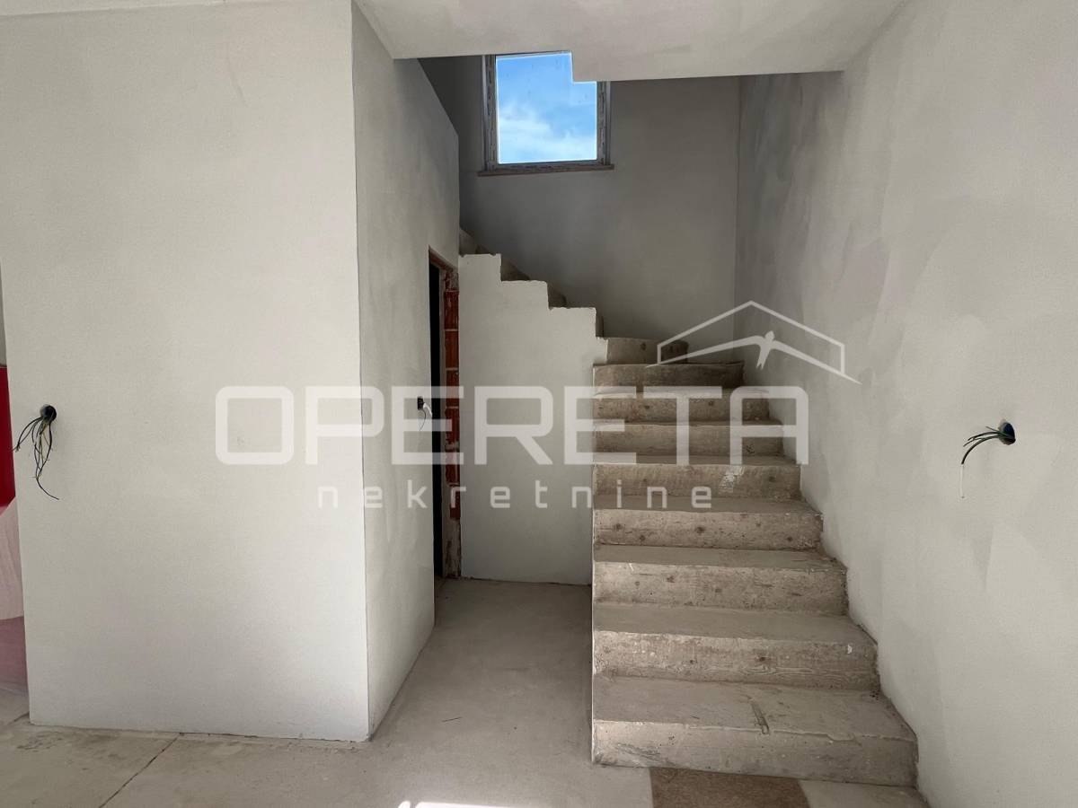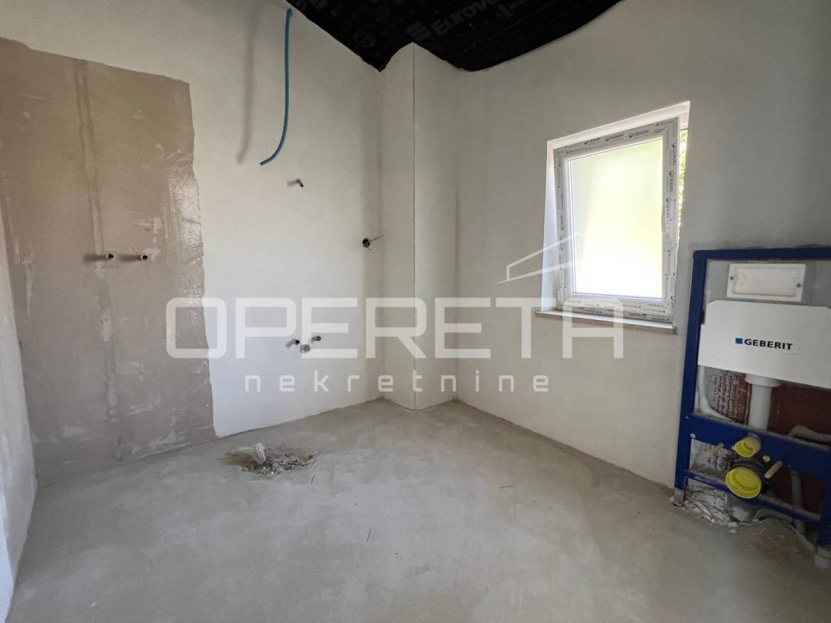 Uređeni okoliš uključuje terasu, bazen od 13 m² sa sunčalištem te dva parkirna mjesta i vrt. Trenutno je u završnoj fazi radova – izvana u fazi uređenja okoliša i bazena, a unutarnji prostori pripremljeni su za postavljanje keramike i podova. Ova faza kupcu pruža jedinstvenu priliku da sam odabere završne materijale poput pločica, parketa, sanitarija i unutarnjih vrata, te tako prilagodi dom vlastitom ukusu.
