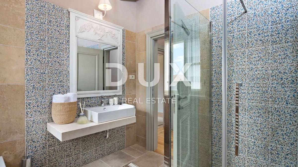 Raskošno se proteže kroz dvije etaže funkcionalnog tlocrta a stambena površina jasno je definirana i odiše elegancijom i luksuzom te pruža visoku razinu komfora uz vrhunsku opremu i namještaj.
