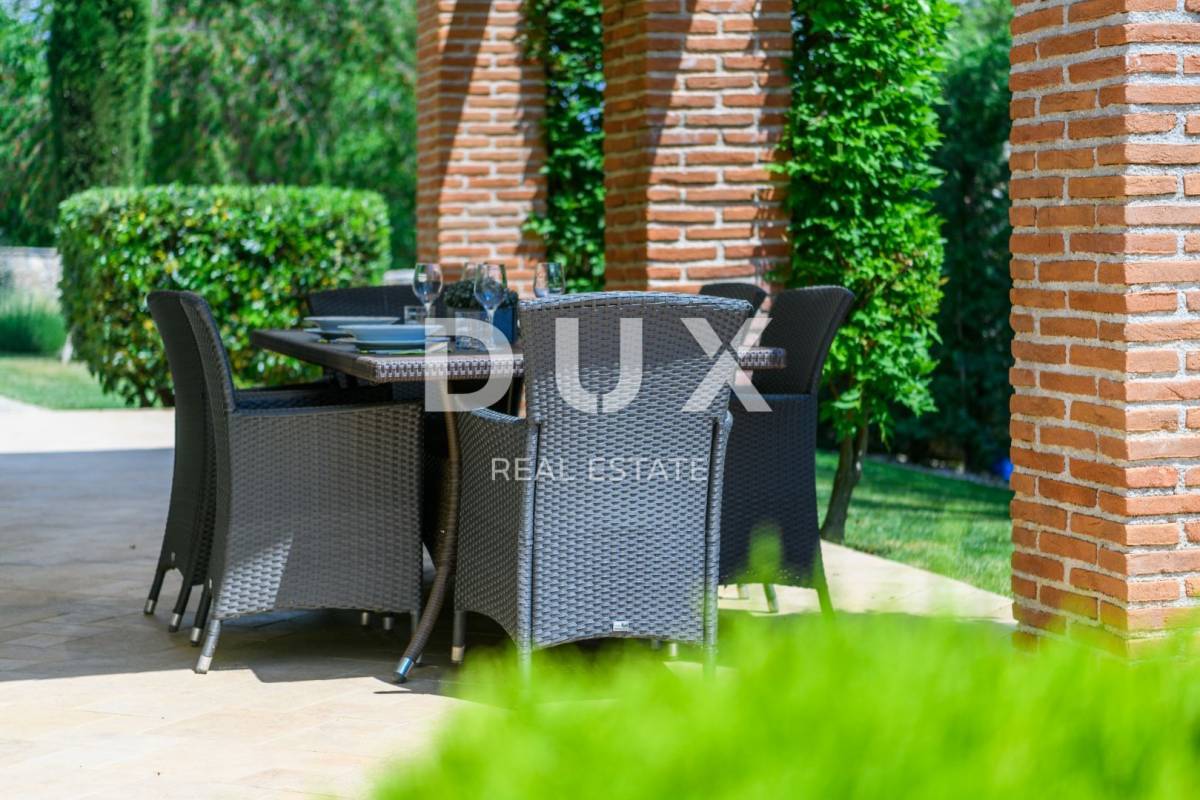 Bajkovita prizemnica smjestila se na terenu od 1313 m2 te se u sklopu okućnice nudi natkriveni dio za sjedenje, bazen te dodatni p natkriveni prostor za sjedenje s kaminom za poseban ambijent tijekom boravka.