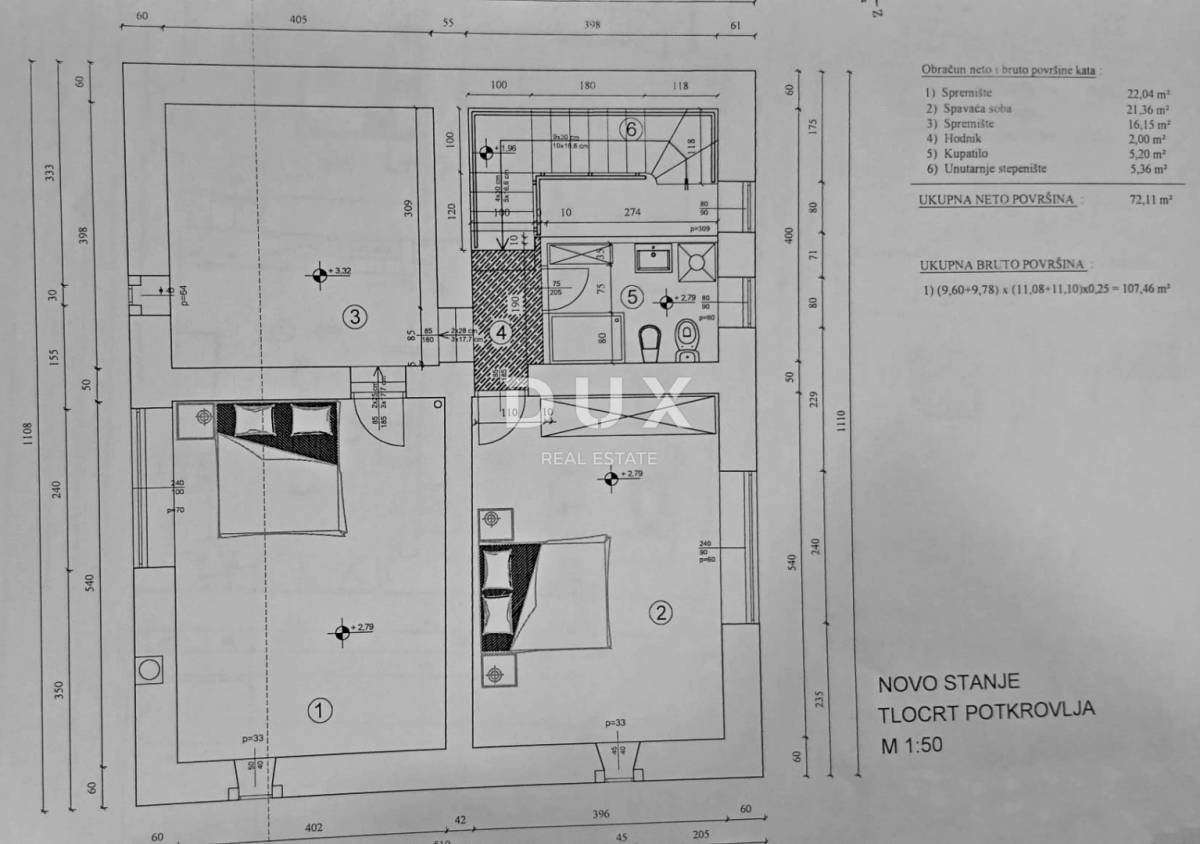 Potkrovlje se sastoji od dvije spavaće sobe, predsoblja i kupaonice.