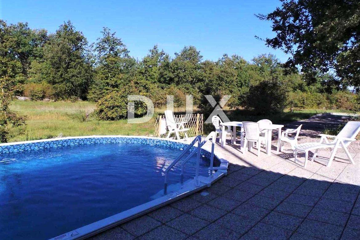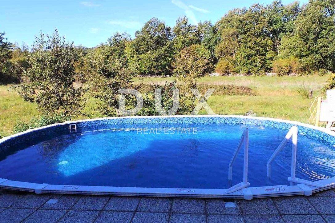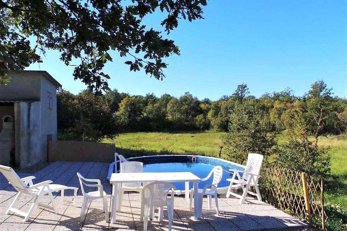 U okolici grada Labina, na samom kraju naselja, prodaje se kuća s bazenom i prostranim zemljištem.
