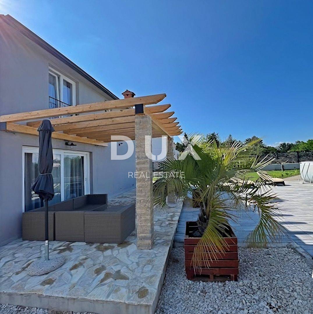 Na ograđenoj i uređenoj okućnici obogaćenoj mediteranskim biljem nalazi se bazen sa sunčalištem.