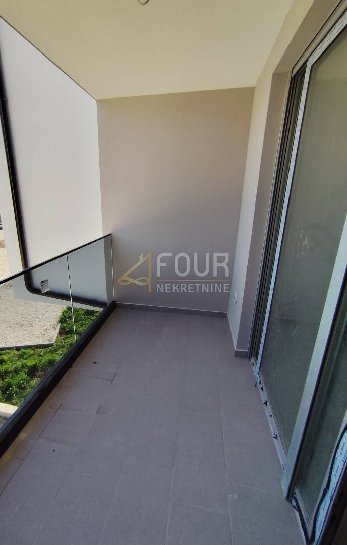 U stanu je postavljena keramika, PVC stolarija, električne rolete, podno grijanje i klima uređaj.