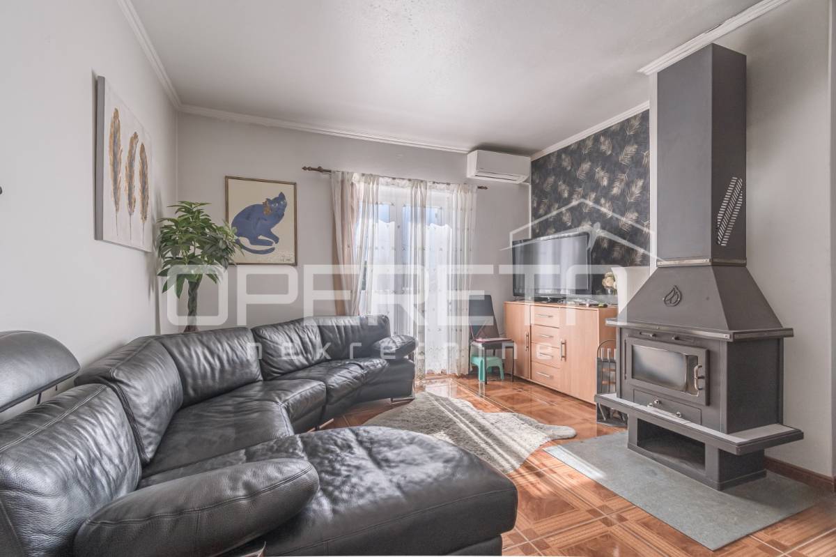 Cijela je parcela ograđena i nudi lijep pogled na zelenilo. Kuća je opremljena s tri klima uređaja te ima dimnjak, što omogućuje dodatne mogućnosti grijanja.