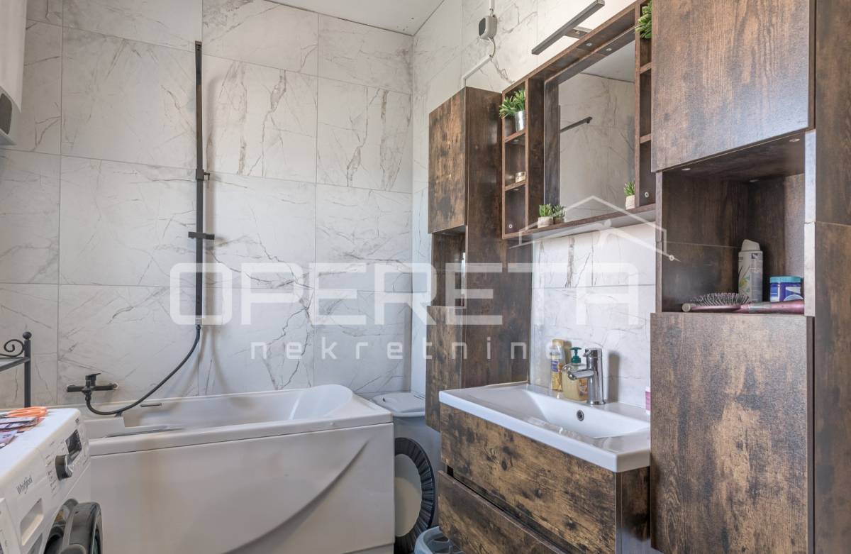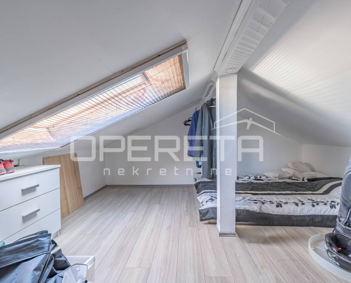 Iz dnevnog dijela vode stepenice prema potkrovlju, čija visina (najniži dio 1,55 m) omogućuje korištenje kao manja soba ili dodatni prostor za odlaganje.
