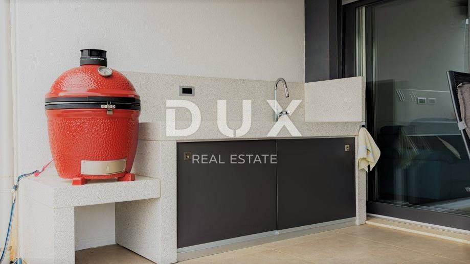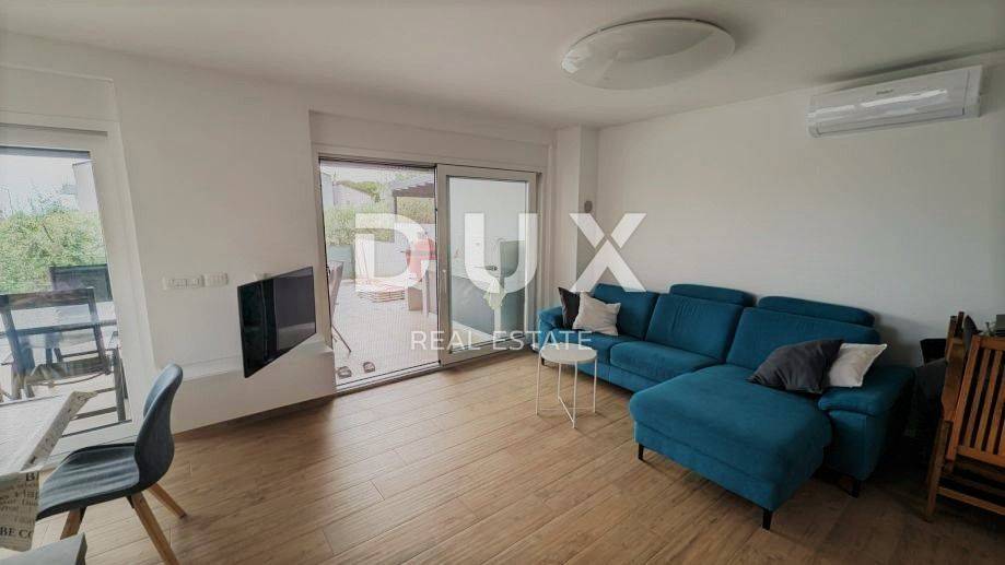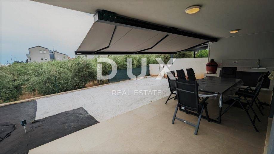 Posebnost ovog stana ogleda se u natkrivenoj terasi površine 16m2, opremljenoj pokretnim tendom dimenzija 7x2.5 metra. Terasa nudi ugodan hlad i pruža tihi kutak za opuštanje uz očaravajući pogled na Jadransko more.