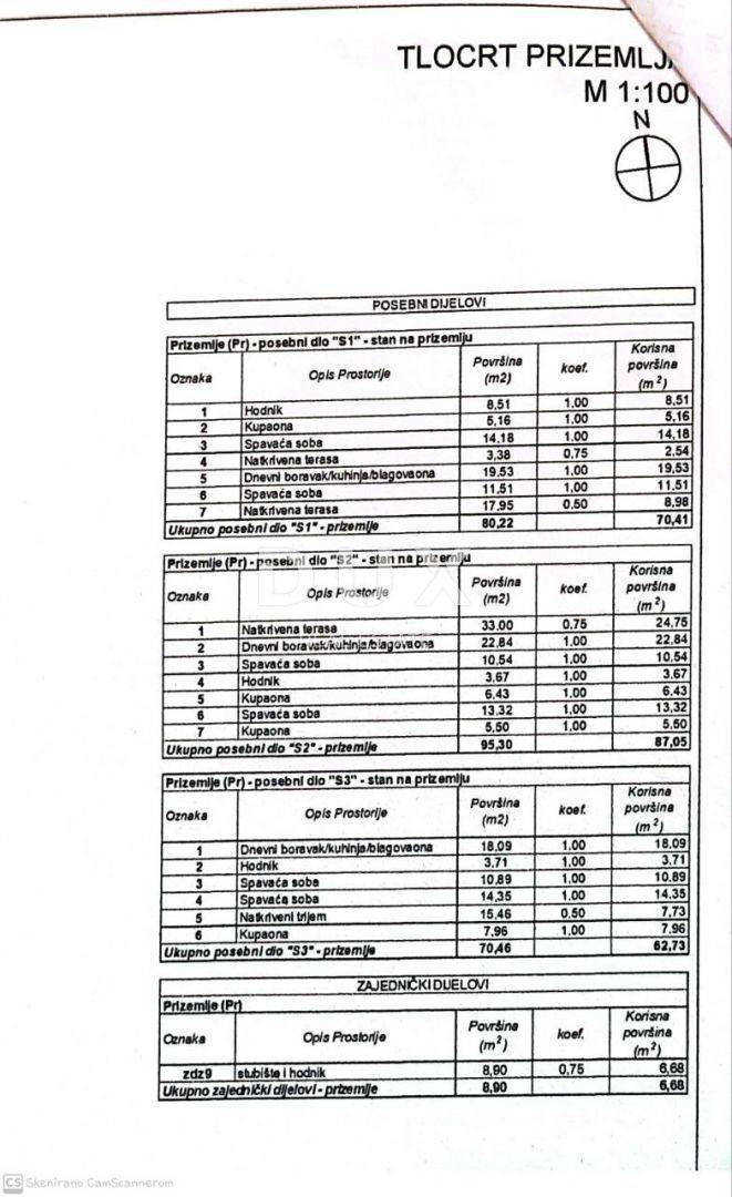 Stan ima ukupno 95.30m2 i sastoji od dvije spavaće sobe, otvorenog koncepta kuhinje i dnevnog boravka, jedne kupaonice te natkrivene terase od 33m2. Ono što izdvaja ovu nekretninu je velika natkrivena terasa od 33 m2 i vlastiti dvorište površine 91.22 m2. Ovdje možete uživati u svježem zraku, sunčevim zrakama i druženju s obitelji i prijateljima. Postavljeno je podno grijanje putem električne energije od 12V. Za toplije dane pobrinut će se 3 klimatske jedinice (jedna u dnevnom i svaka u spavaćoj sobi). Poseban ulaz čini ovu nekretninu još privlačnijom, pružajući vam osjećaj vlastite oaze.