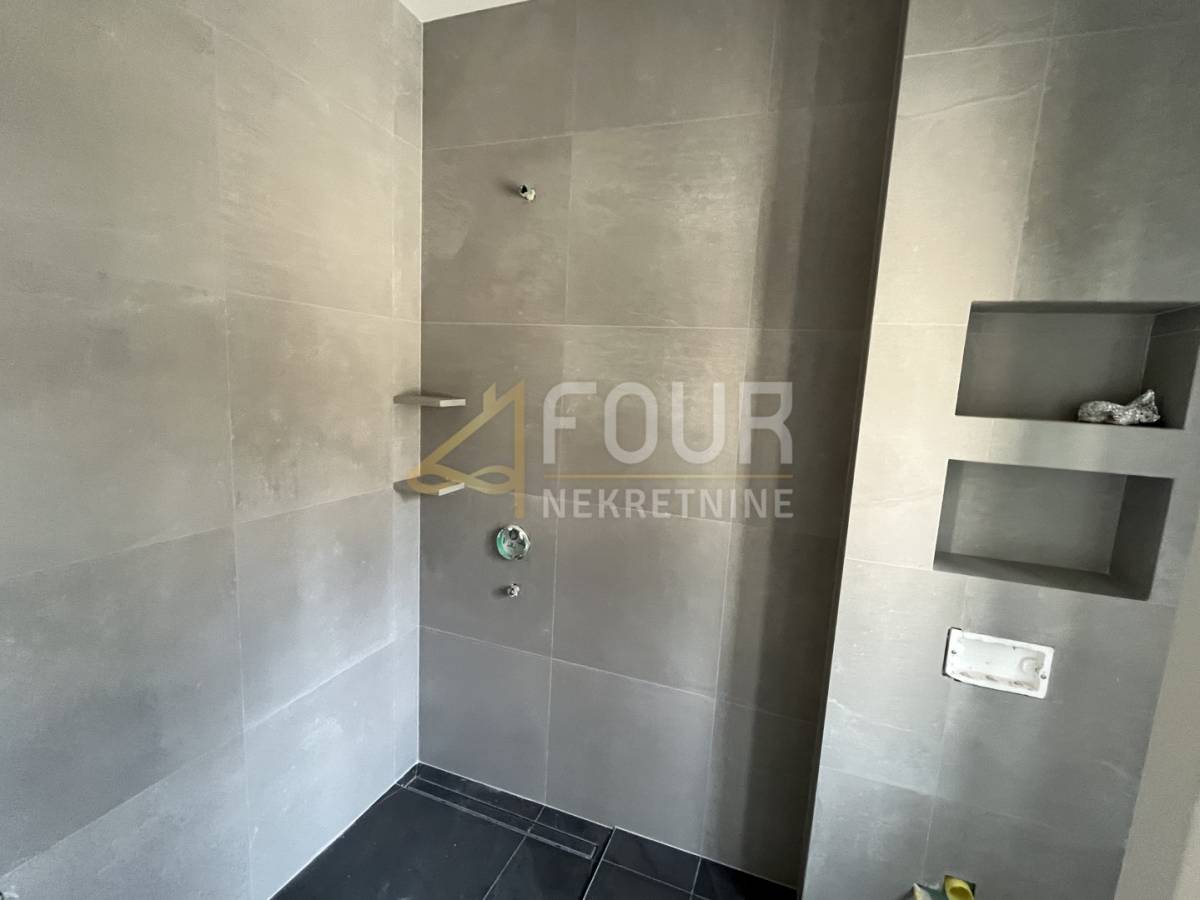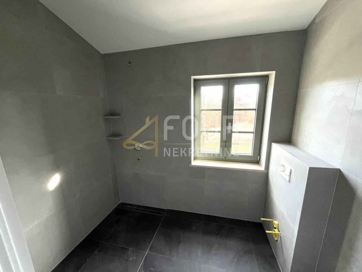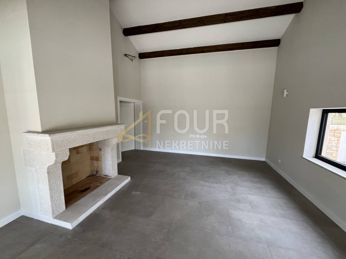 Dovršena je početkom ove godine te odiše suvremenim dizajnom i prostranošću. Već pri ulasku dočekuju vas ostava i gostinjski toalet, nakon čega hodnik vodi do impresivnog dnevnog boravka s kaminom, koji čini središte doma. Iz dnevnog prostora izlazi se na stražnji dio dvorišta gdje su smješteni bazen, ljetna kuhinja i roštilj, stvarajući savršen ambijent za opuštanje i druženje. Kuhinja je odvojena i vrlo prostrana te ostavljena budućim vlasnicima na uređenje prema vlastitim željama. U prizemlju se nalazi i jedna spavaća soba s vlastitom kupaonicom.