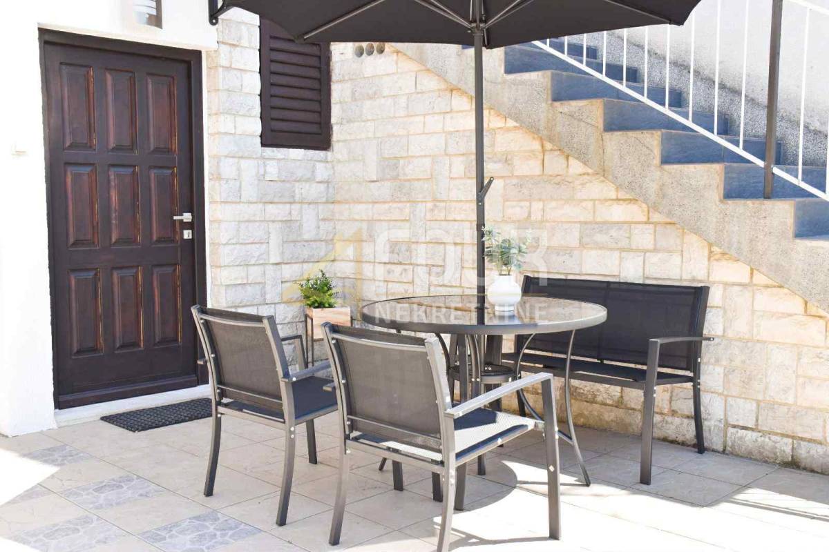 Na prodaju je stan površine 94 m2, smješten na u prizemlju katu kuće s ukupno tri stana. Ima zaseban ulaz prilagođen osobama s invaliditetom i prostranu terasu, a nalazi se na mirnoj lokaciji u Poreču, samo 600 metara od mora. Sastoji se od dvije spavaće sobe, dnevnog boravka i kuhinje te je potpuno namješten i odmah useljiv. Adaptiran je 2014., dok je fasada dodatno obnovljena. Opremljen je PVC stolarijom i klimom, a pripada mu jedno vanjsko parkirno mjesto. U dvorištu se nalazi vrt i prostor s roštiljem koji je namijenjen zajedničkom korištenju. U blizini se nalaze svi potrebni sadržaji — supermarket je udaljen svega 100 metara, a centar grada, tržnica i škola dostupni su unutar desetak minuta hoda.