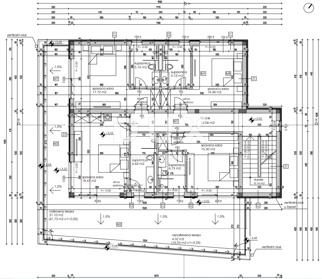 Stolarija (aluminijska, boje antracita, troslojno staklo).