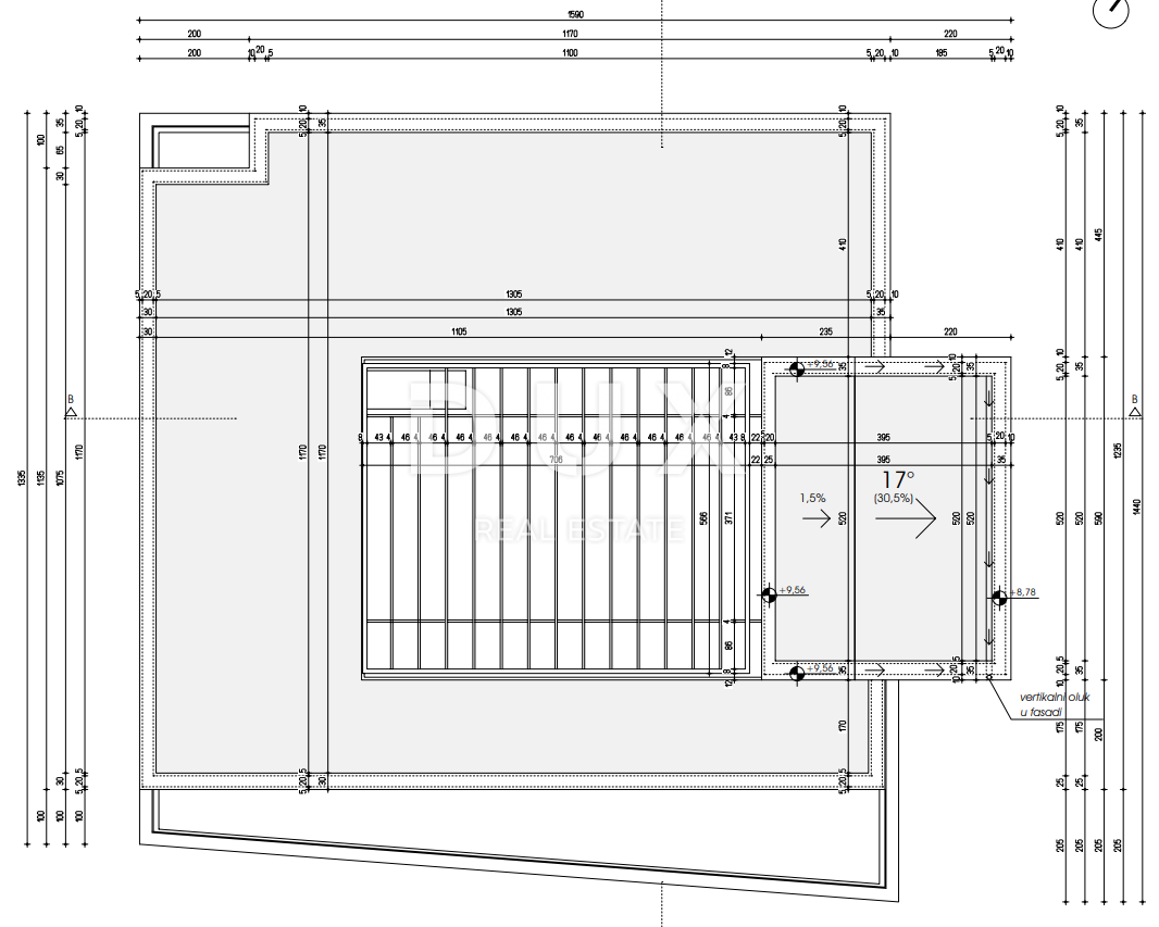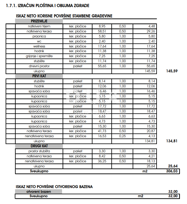 Na okućnici površine 772 m2 smjestila se vila ukupne površine 224,95 m2.