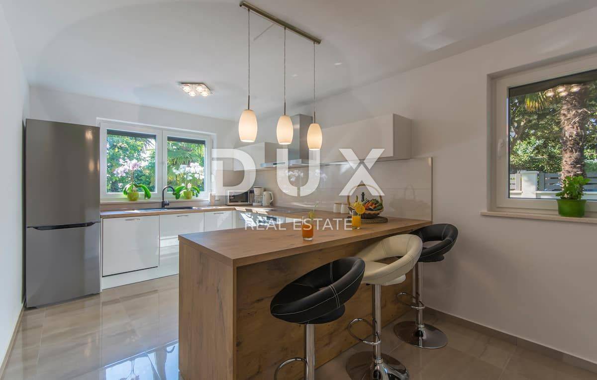 Ova vila nalazi se na samo 300 metara od mora u jednom od najljepših dijelova Poreča. Sastoji se od dnevnog boravka, blagovaonice i potpuno opremljene kuhinje u prizemlju. Prvi kat ima 4 spavaće sobe i 3 kupaonice, 3 lijepe terase. Na vrtu od 700m 2 nalazi se bazen površine 30m2, blagovaonica s ljetnom kuhinjom i roštiljem.