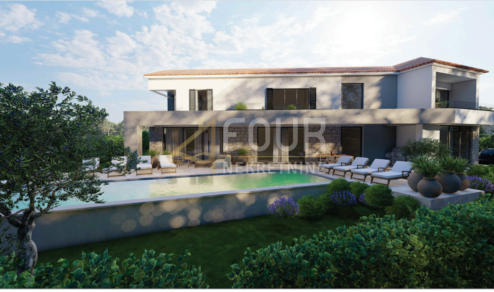 Ova nekretnina predstavlja savršen spoj mirne lokacije, moderne arhitekture i vrhunske kvalitete gradnje, udaljena svega pet kilometara od mora i oko petnaest minuta vožnje od centra Poreča.